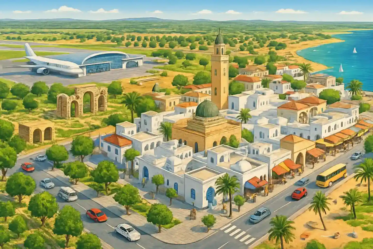 Enfidha-Hammamet internationella flygplats (NBE) är Tunisiens modernaste flygplats, öppnad 2009, med 5 uthyrare som betjänar turistregionen Sahel. Flygplatsen ligger 35 km norr om Sousse och 45 km söder om Hammamet, perfekt placerad för att nå båda semesterorterna. Med hyrbil från NBE är hela den tunisiska östkusten inom räckhåll.