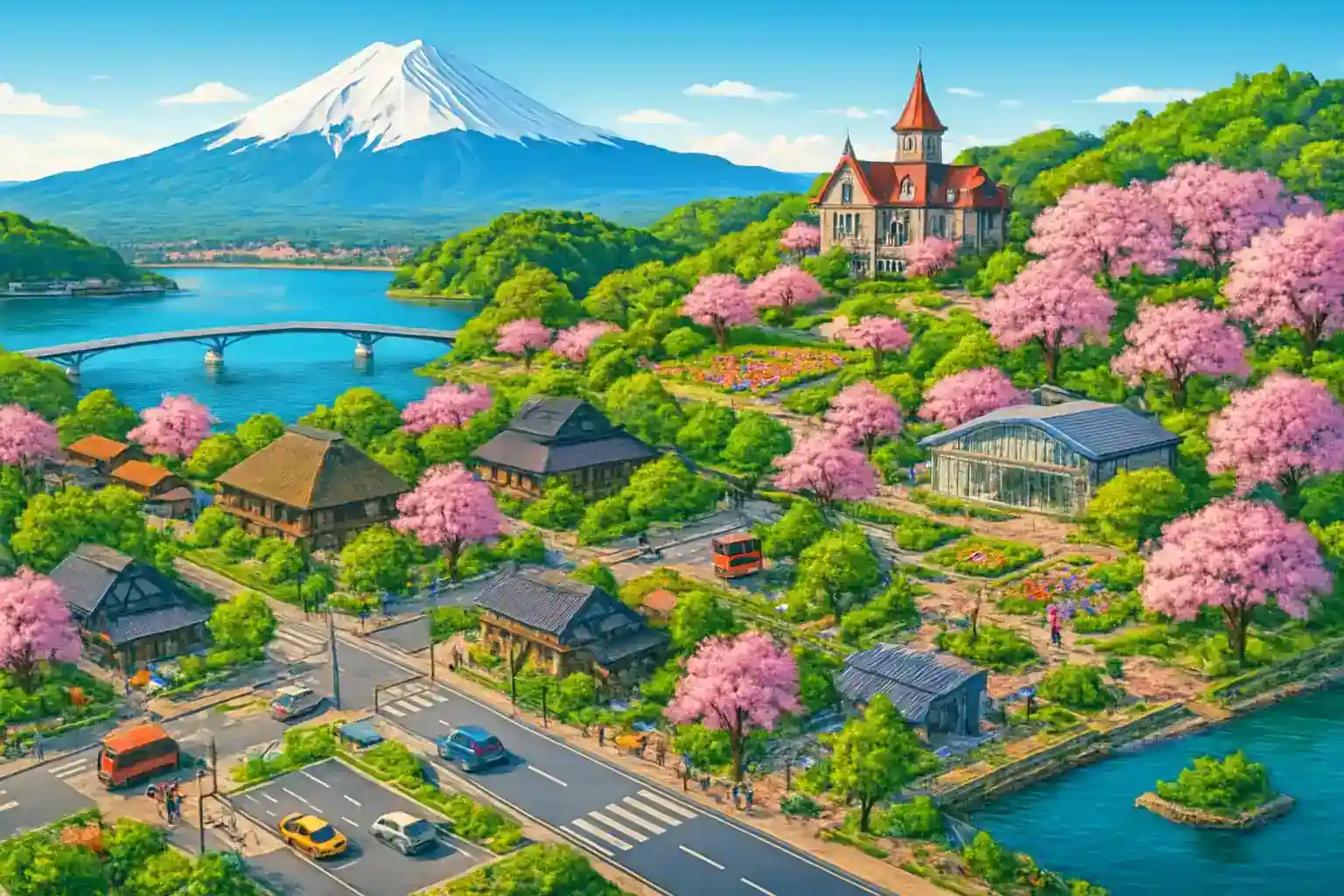Undvik helger i april under körsbärsblomningssäsongen – trafiken längs Lake Kawaguchi kan stå stilla i timmar. Hur lång tid tar det att köra runt alla fem Fuji-sjöarna? En rundtur runt alla fem sjöarna – Kawaguchi, Saiko, Shoji, Motosu och Yamanaka – är cirka 80 km och tar 2–3 timmar med stopp.