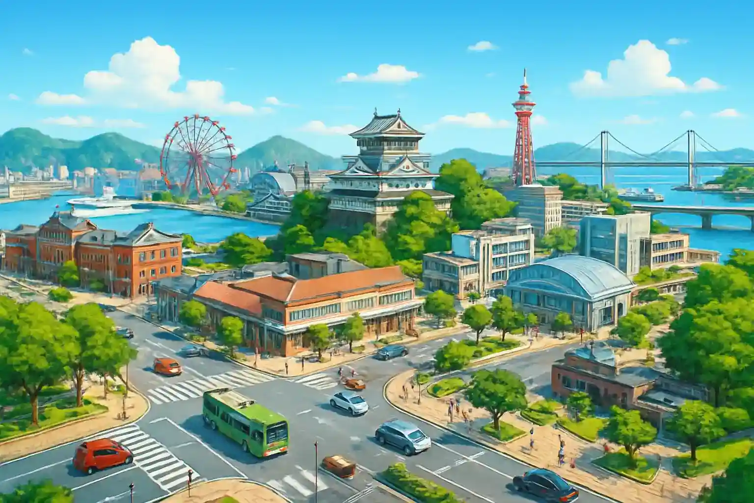 Parkera vid Riverwalk Kitakyushu om du utforskar centrum – parkeringshuset är stort och prisvärt. Kör till Sarakurayama-toppen för panoramautsikt över Kanmon-sundet, 20 minuter från stationen. Boka i förväg under Golden Week då Kokura-festivalen lockar många besökare.