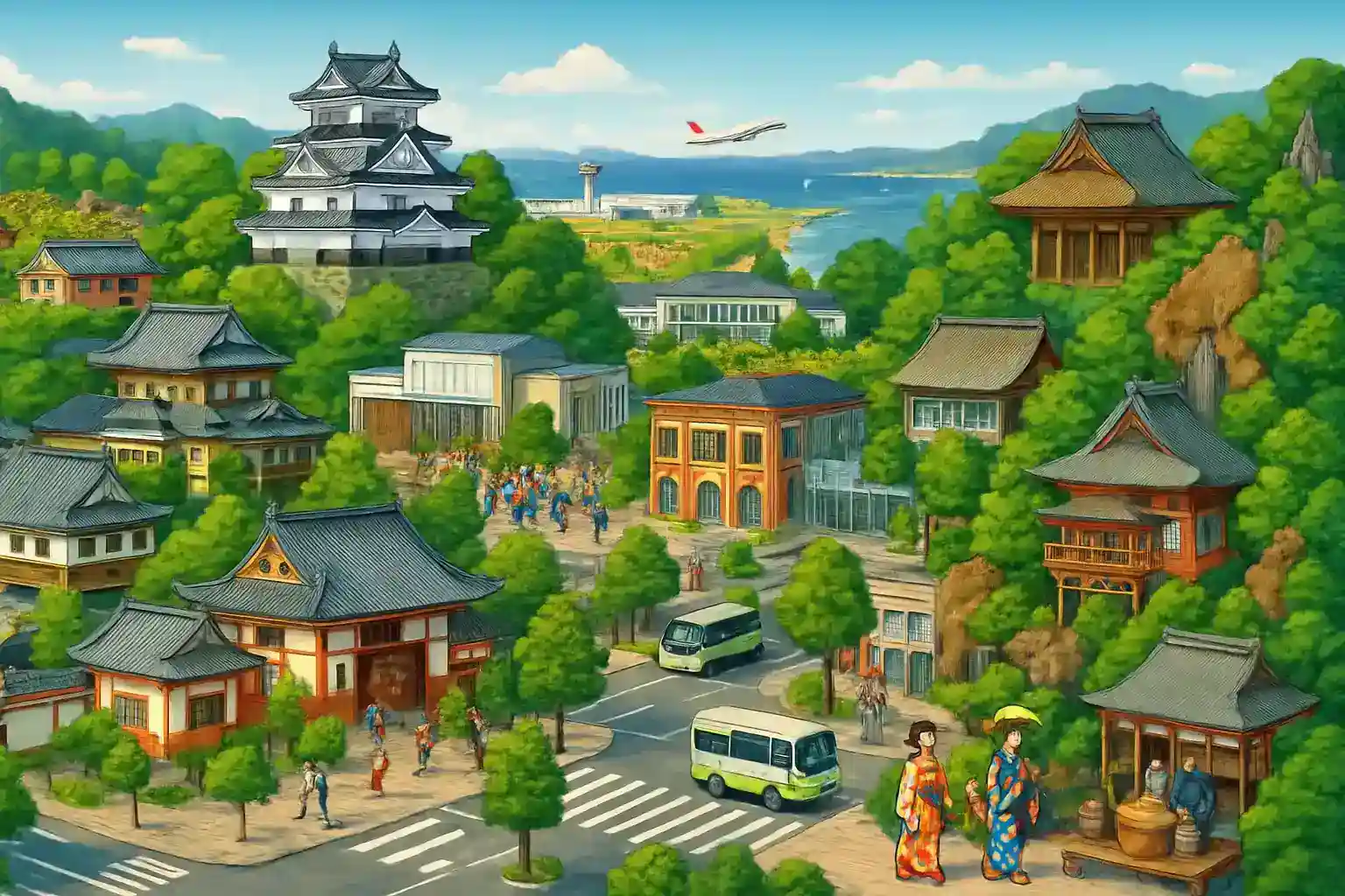 Härifrån är det ungefär 45 minuters körning norrut till Kanazawas berömda Kenroku-en-trädgård. Komatsu stad själv är känd för sitt Noh-teatersällskap och keramiktraditioner. Mot norr når du Noto-halvöns dramatiska kustlandskap på drygt en timme.
