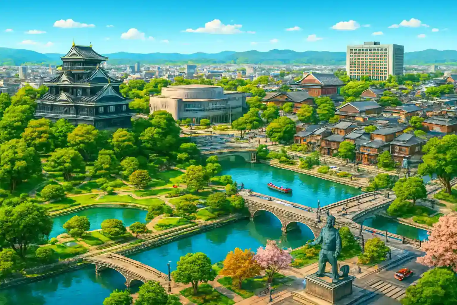 Ja, Hiroshima ligger ca 100 km västerut och nås på ungefär 1 timme via San'yo Expressway.