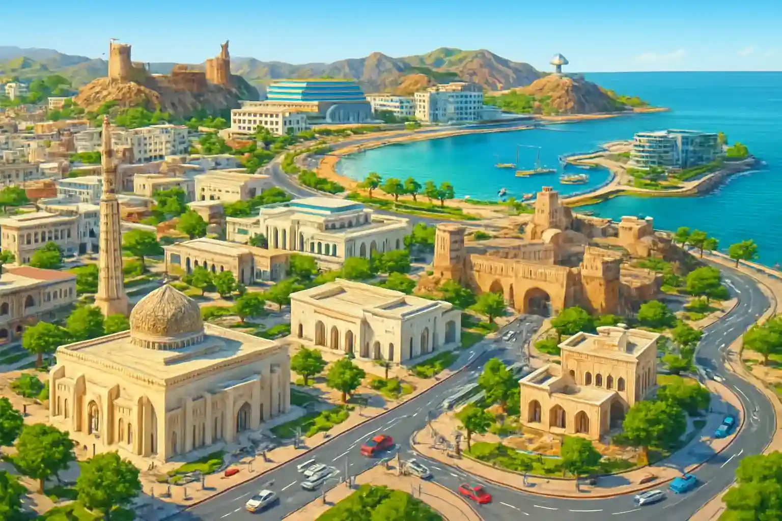 Muscat flygplats ligger strategiskt placerad bara ett par kilometer från stadens centrum, vilket gör det enkelt att ge sig ut på äventyr i Oman direkt efter landningen. Kör längs kusten mot den historiska stadsdelen Mutrah för att utforska den doftande souken och den välbevarade cornichen, ett avstånd på ungefär 40 kilometer. Vill du uppleva Omans dramatiska berglandskap tar du vägen mot Nizwa och Jebel Akhdar, cirka två till tre timmars körning in i landet, där gröna terrasser och gamla befästningar väntar.