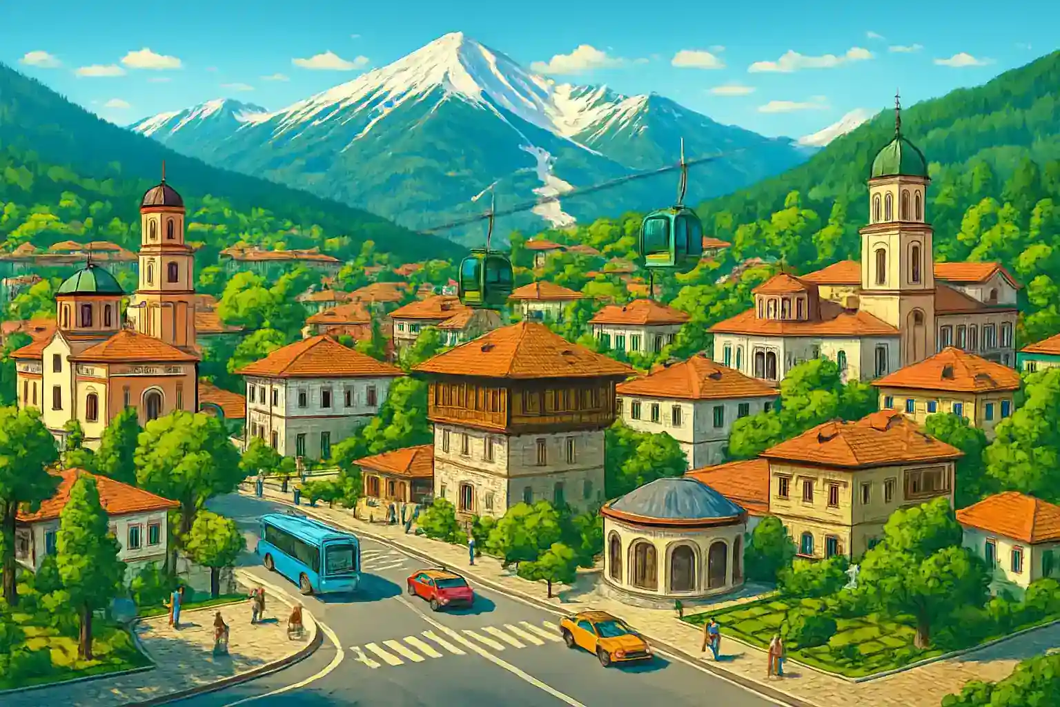 Bansko är en av Bulgariens mest mångsidiga resmål, med sin unika kombination av vintersport och autentisk bergsmiljö mitt i Pirinbergen. Från stadens centrum är det bara några minuters körning upp till skidområdet, medan den pittoreska gamla stan med sina stenlagda gator och traditionella mehanas erbjuder en avkopplande kontrast. Tar man bilen söderut längs väg 19 når man nationalparken Pirin på kort tid, där dramatiska raviner och glaciärsjöar väntar.