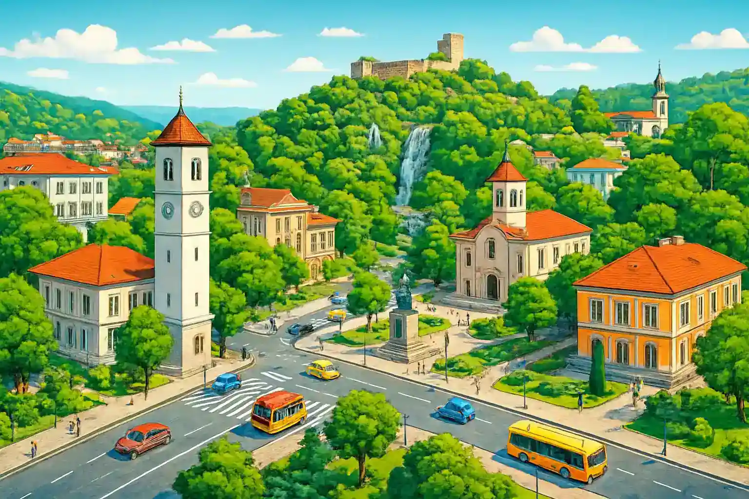 Sliven ligger i centrala Bulgarien vid foten av Balkankbergen och är en perfekt utgångspunkt för att utforska regionen på egen hand. Med bil tar det ungefär en timme söderut på väg E773 att nå kuststaden Burgas vid Svarta havet, varifrån flera populära strandresmål som Sunny Beach och Nesebar finns inom kort avstånd. Norrut genom Balkankasseln lockar nationalparken Sinite Kamani med dramatiska klippformationer och vandringsleder, bara några minuters körning från stadens centrum.