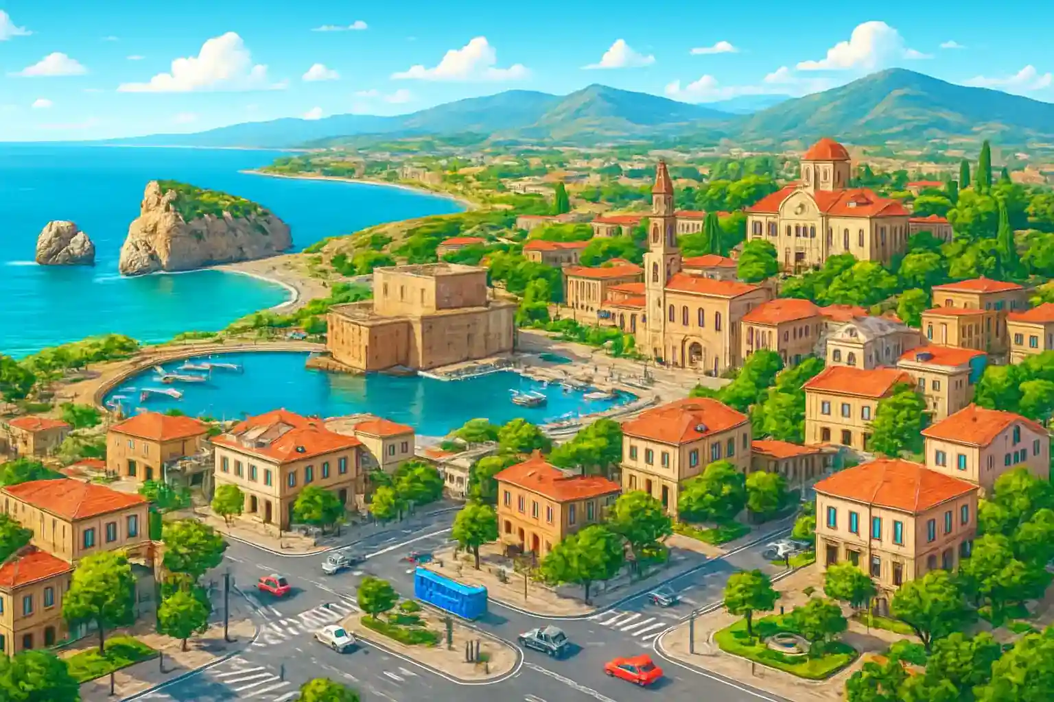 Det är ungefär 65 km och tar cirka 55–65 minuter via motorvägen A6 och B7. Finns det parkeringsavgifter i Polis centrum? Parkering är generellt gratis i Polis, men under högsäsong kan det vara trångt nära torget och hamnen.