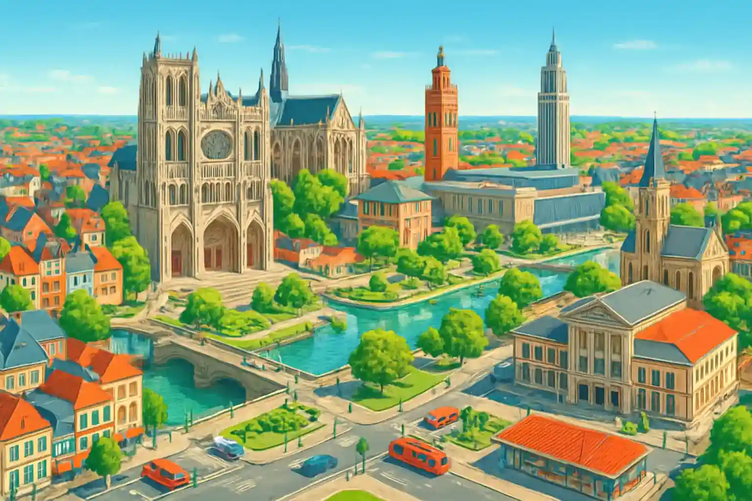 Kör norrut 4 km för att nå Amiens centrum utan att passera innerstadens trafik. Undvik rusningstid 7–9 på morgonen längs RD1001. Är Longueau nära Amiens tågstation?