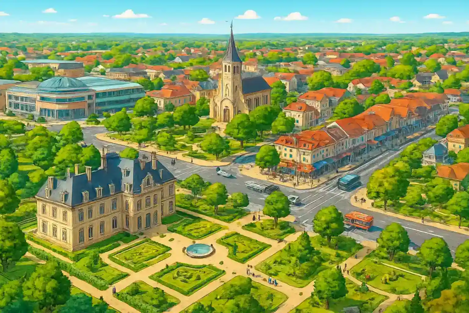 Disneyland Paris ligger ca 8 km västerut i Marne-la-Vallée och nås på ungefär 12 minuter med bil via D402. Finns det parkeringsmöjligheter i Chanteloup-en-Brie? Ja, samhället har gott om gratis parkering till skillnad från Paris centrum, vilket gör det till en praktisk bas för utflykter i regionen.