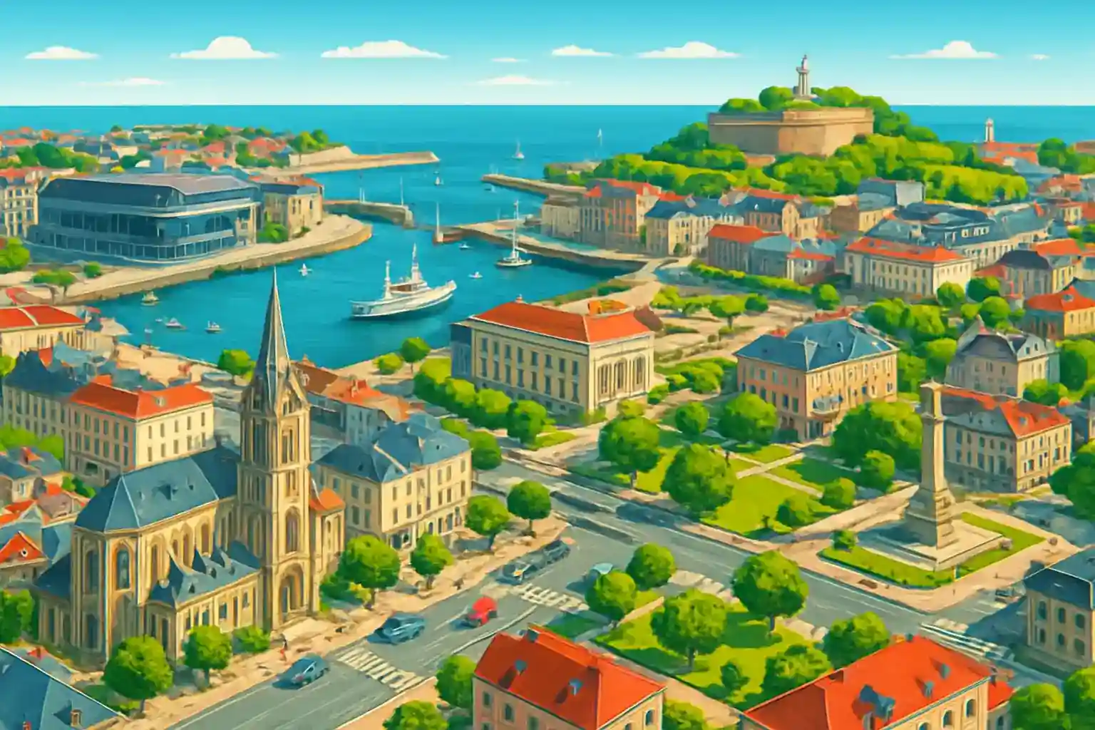 Hyr bil vid Cherbourgs tågstation och kombinera tågresan med smidig biluthyrning för att utforska Cotentin-halvön. Stationen betjänas av TGV från Paris Gare Saint-Lazare på drygt 3 timmar, och tre uthyrare finns i närheten. Tågstationen Cherbourg ligger i stadens södra del, nära centrum och bara 3 km från färjehamnen.
