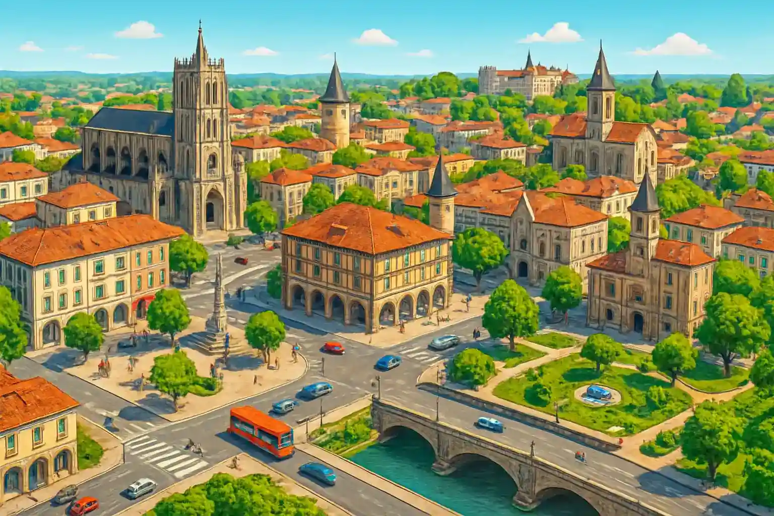 Finns det parkeringsmöjligheter vid hyrbilsstationen i södra Condom? Ja, det finns gatuparkering och mindre parkeringsplatser i södra Condom, och trafiken är generellt lugn utanför turistsäsongen.
