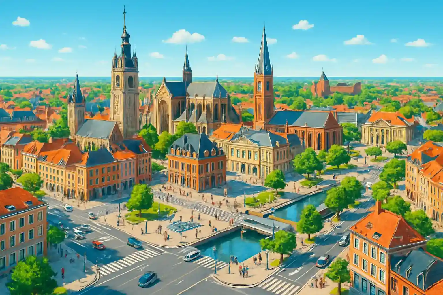Douai gare är en viktig knutpunkt på TGV-linjen mellan Paris och Lille, med tågtider på ca 1 timme till Paris Gare du Nord. Stationsområdet gränsar till de historiska kvarteren kring Rue de la Mairie och erbjuder enkel tillgång till Douais kanalpromenader. Härifrån når du Valenciennes på 20 minuter med bil österut via N455.