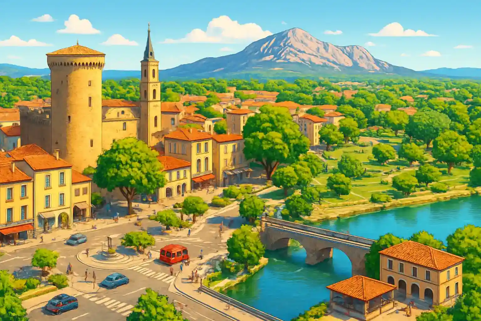 La Tour d'Aigues är en charmig provensalsk by i Luberon-regionen, omgiven av vingårdar och lavendelfält som blommar vackrast under juni och juli. Från byns centrum når du Pertuis på bara tio minuter söderut, medan Aix-en-Provence ligger cirka 35 kilometer västerut längs D556. Ruinen av det imponerande renässansslottet Château de la Tour d'Aigues reser sig mitt i byn och är ett självklart första stopp.
