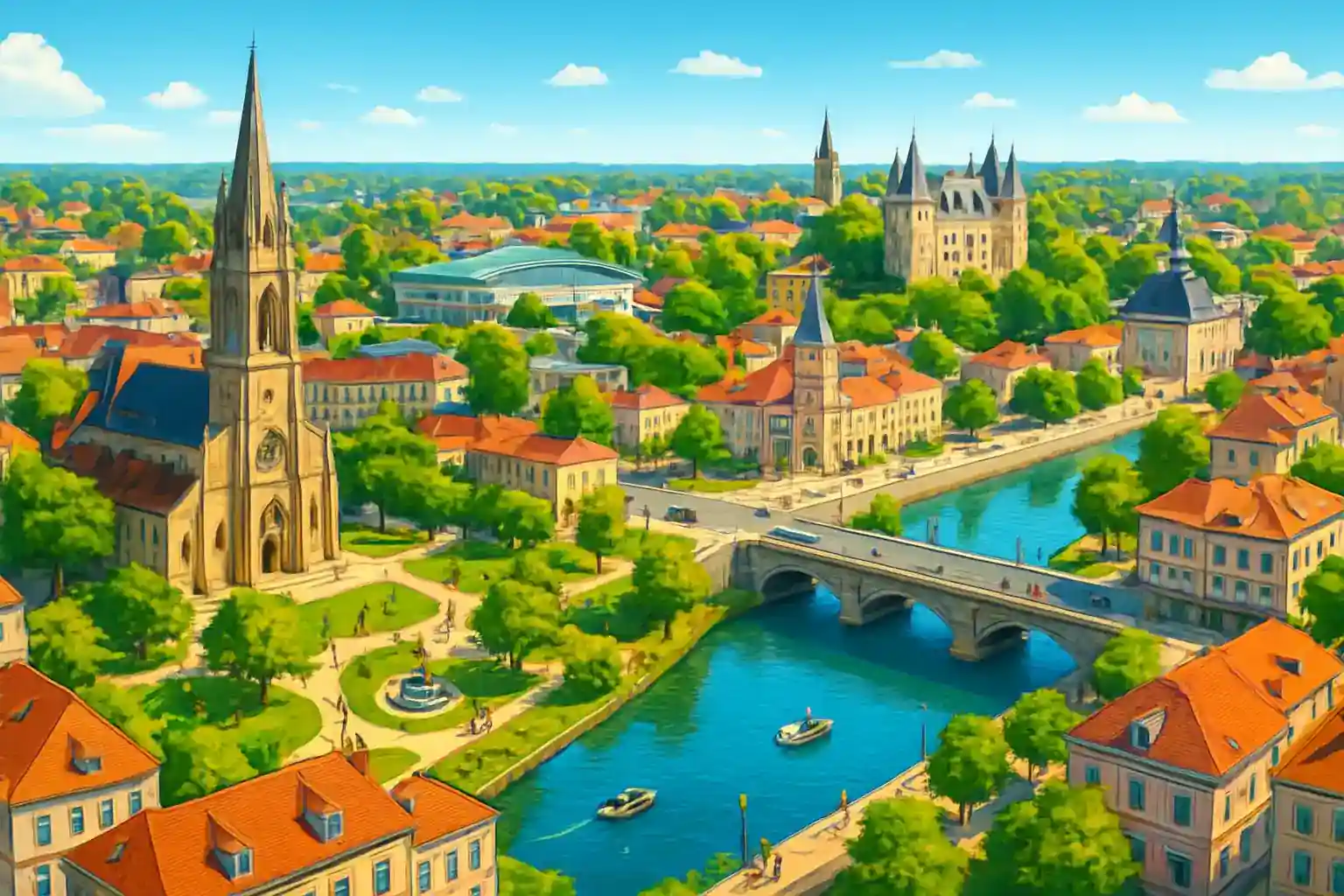 Les Herbiers är en livlig småstad i Vendéens kulliga inland, känd som porten till Bocage Vendéen. La Roche-sur-Yon, departementets huvudstad, ligger 30 km söderut och Cholet 35 km norrut. Boka hyrbilen tidigt om du planerar besök till Le Puy du Fou – sommarsäsongen är extremt populär.