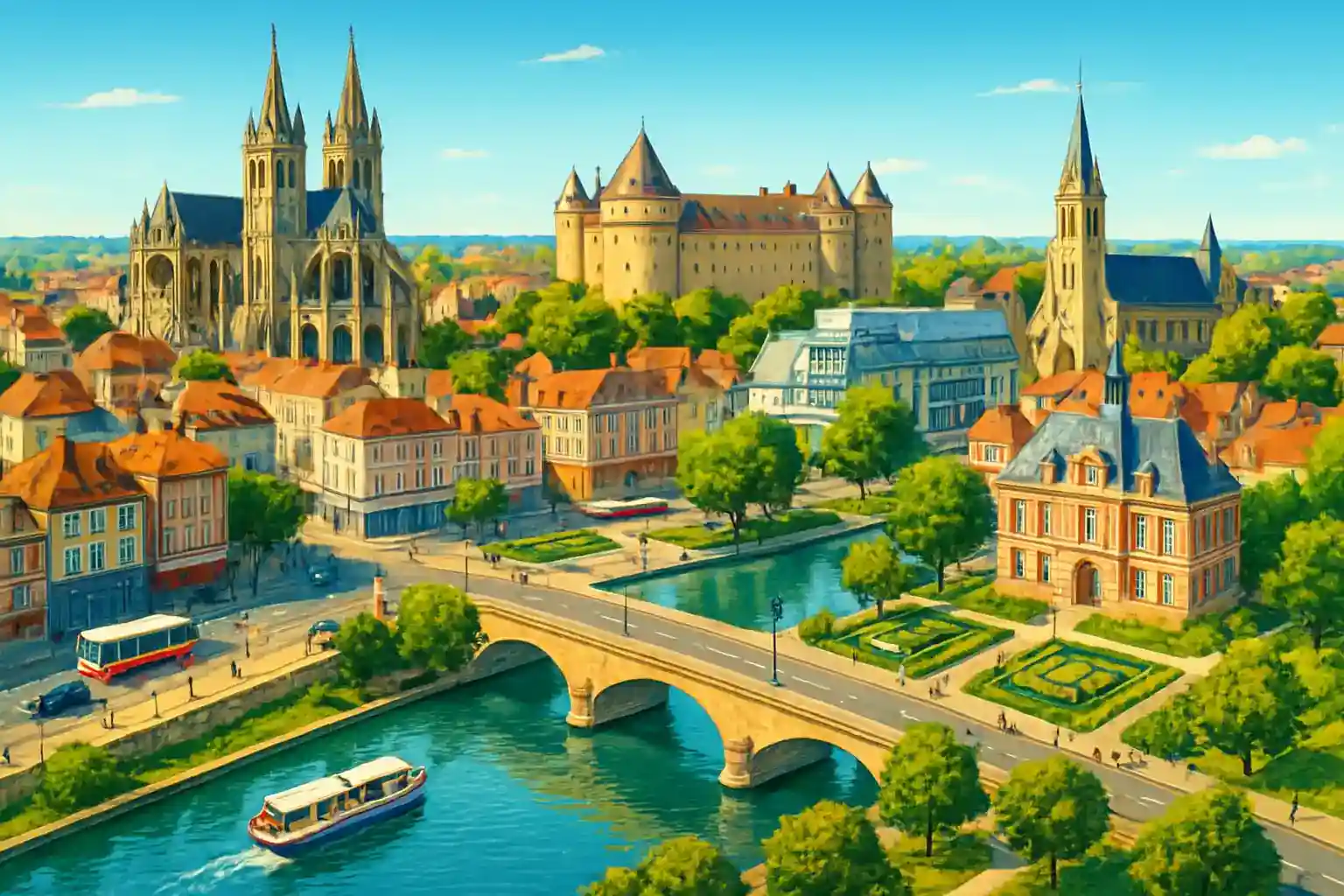 Undvik att köra in i Paris innerstad utan att kontrollera Crit'Air-krav för miljözoner. Parkering i Meaux centrum är enklast längs Quai de la Grande Île vid ån. Hur långt är det från Meaux centrum till Paris?