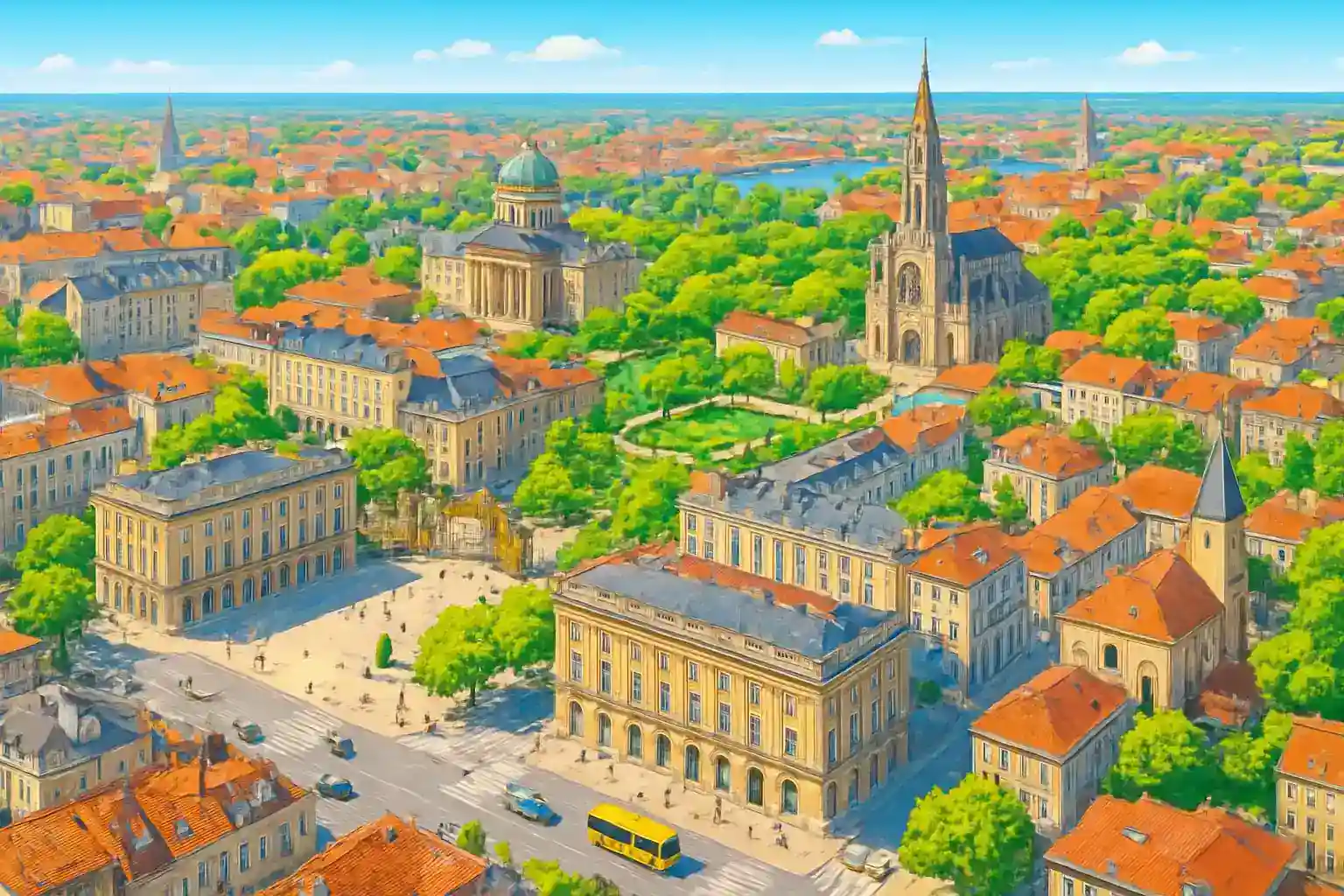 Parkera vid stationen och gå till fots till Place Stanislas och gamla stan – det är bara 800 meter. Gör en rundtur i Lorraine: Metz (55 km), Verdun (85 km) och Épinal (65 km) är alla enkelt nåbara dagsutflykter. Boka bil i förväg under sommaren när Nancy lockar många besökare till sina barockträdgårdar.