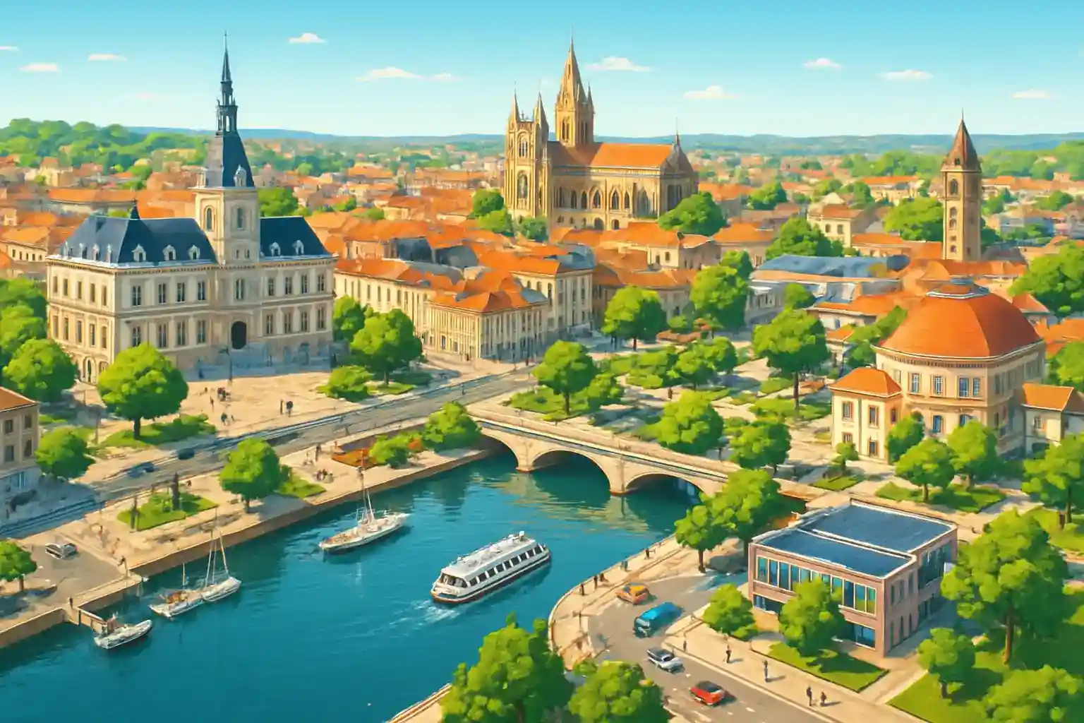 Kan jag köra till Vichy från Roanne? Ja, Vichy ligger 65 km söderut via D906 och tar ca 50 minuter – en trevlig körning genom Allier-dalen. Finns det parkeringsplatser vid uthyrningsstället i Roanne centrum?