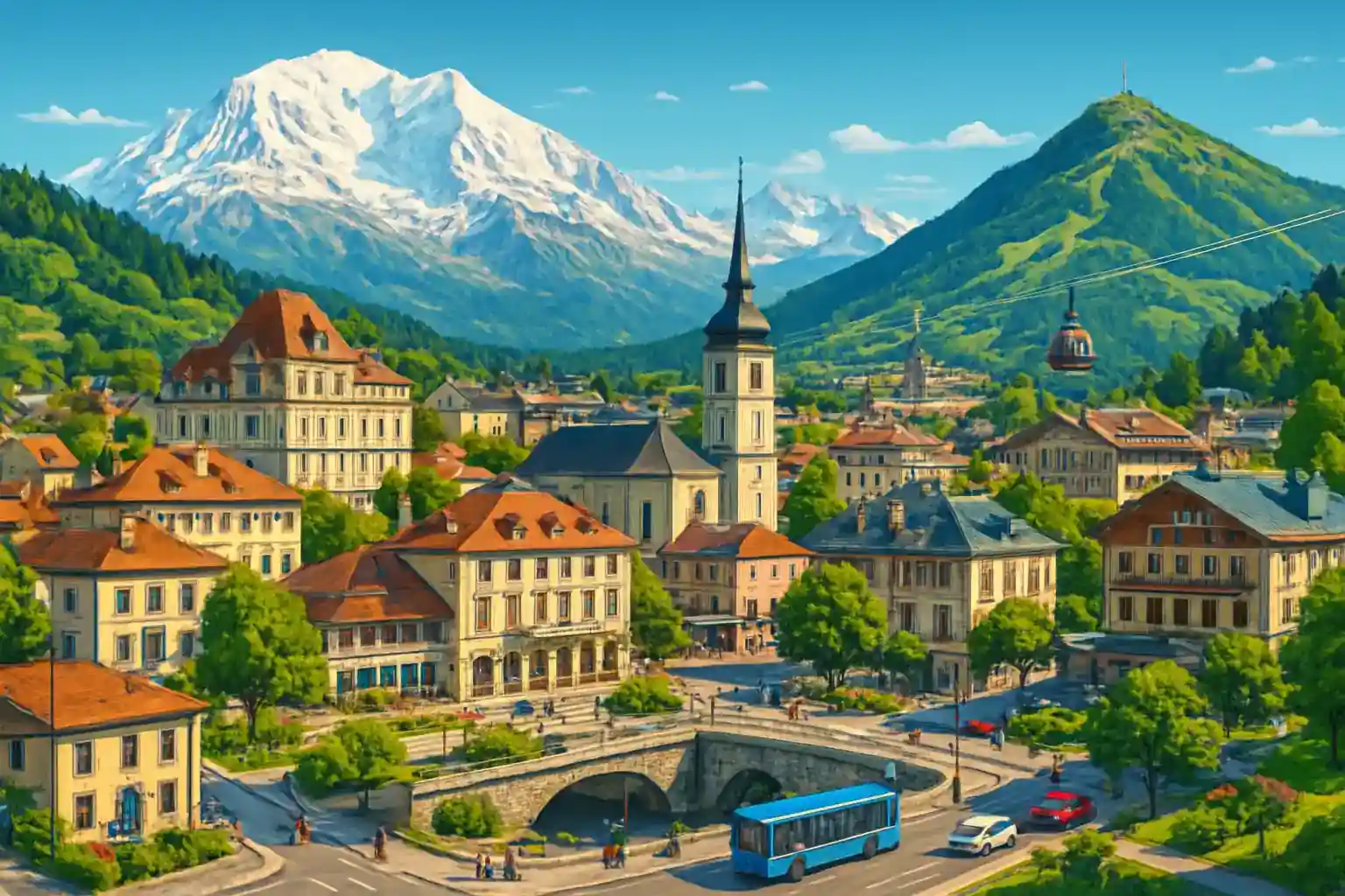 Hyr bil vid tågstationen i Saint-Gervais-les-Bains och utforska Mont Blanc-massivet och Chamonix-dalen på nära håll. Orten ligger ca 25 km nordväst om Chamonix och 80 km öster om Genève, i hjärtat av de franska alperna. Med bil når du Chamonix på 30 minuter och kan enkelt kombinera alpina äventyr med utflykter till Schweiz och Italien.