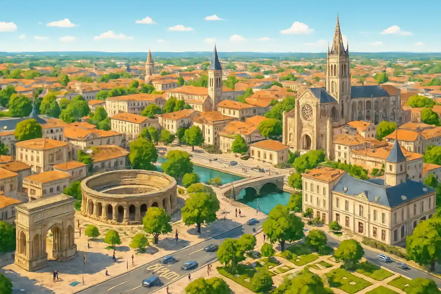 Bordeaux ligger 90 km söderut och nås på ungefär 1 timme via motorväg A10. Kan jag lämna bilen i La Rochelle om jag hyr i Saintes? Envägsuthyrning till La Rochelle (75 km norrut) är möjlig hos vissa uthyrare men kan medföra extra avgift – kontrollera vid bokning.