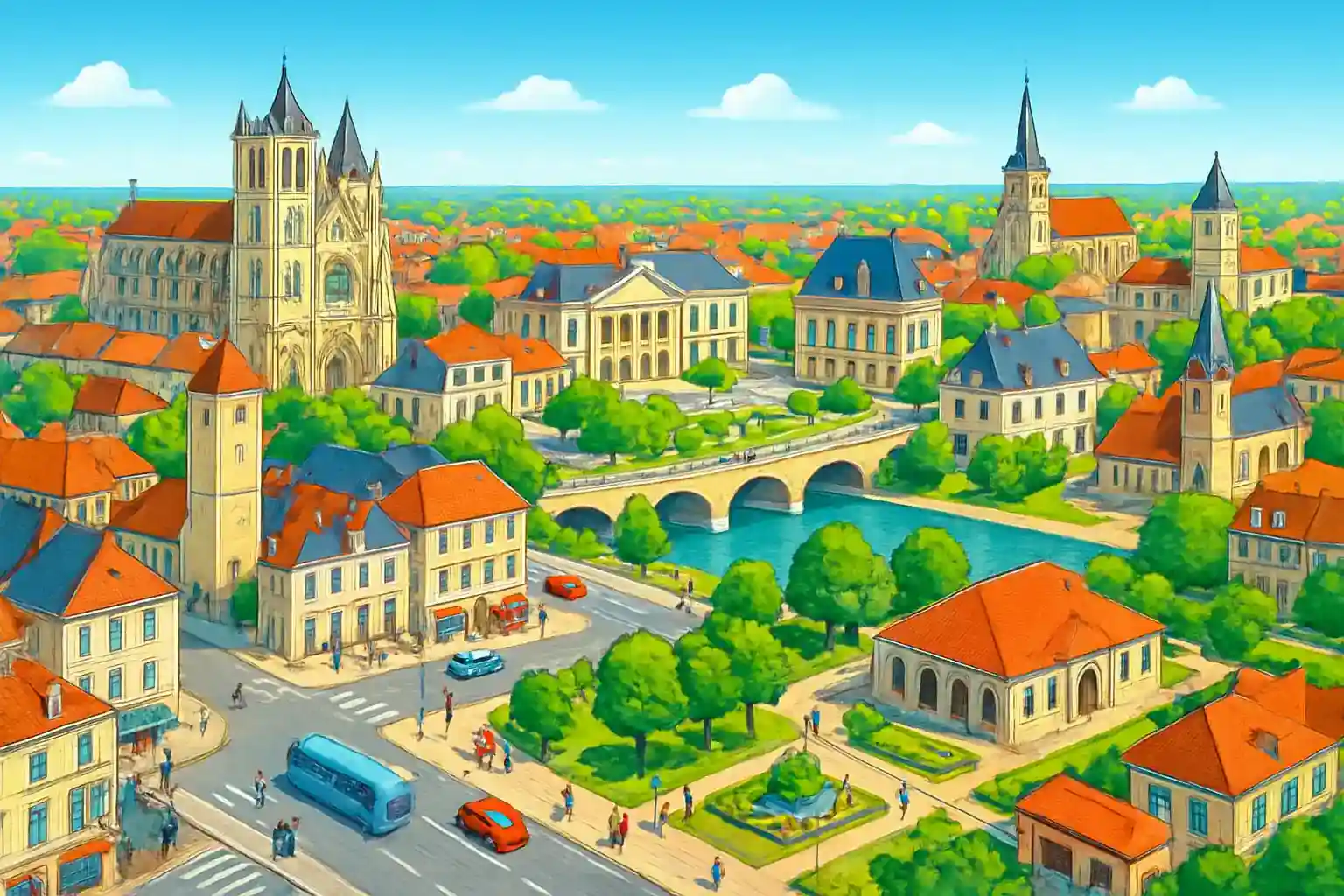 Sens gare ligger i södra delen av staden nära Boulevard du Mail, och det är bara 3 minuters körning till katedralen Saint-Étienne och den historiska stadskärnan. Motorväg A6 nås på ca 5 minuter, vilket gör stationen till ett utmärkt startläge för resor mot Auxerre (60 km) eller Troyes (75 km nordost). Hämta bilen direkt när tåget anländer – uthyraren finns i stationsbyggnaden eller alldeles intill.