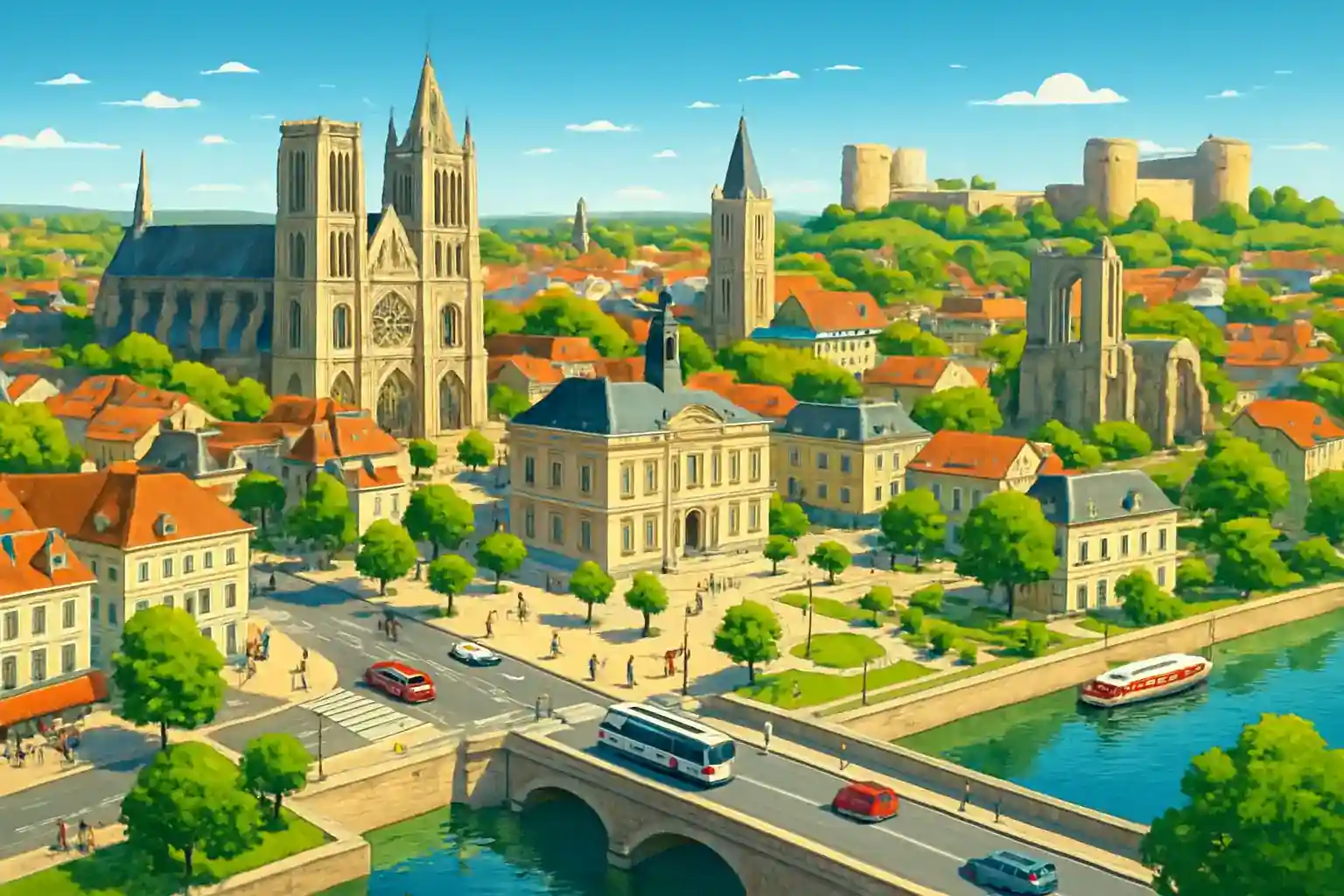 Hyr bil i Soissons centrum och upptäck denna historiska stad i Aisne-departementet, känd för sin gotiska katedral Saint-Gervais-et-Saint-Protais och sitt rika krigsminnesmärken från första världskriget. Soissons ligger 100 km nordost om Paris och 30 km från Laon, med utmärkta vägar mot Champagne-regionen. Med bil kan du enkelt besöka slagfälten vid Chemin des Dames, bara 20 km norrut.