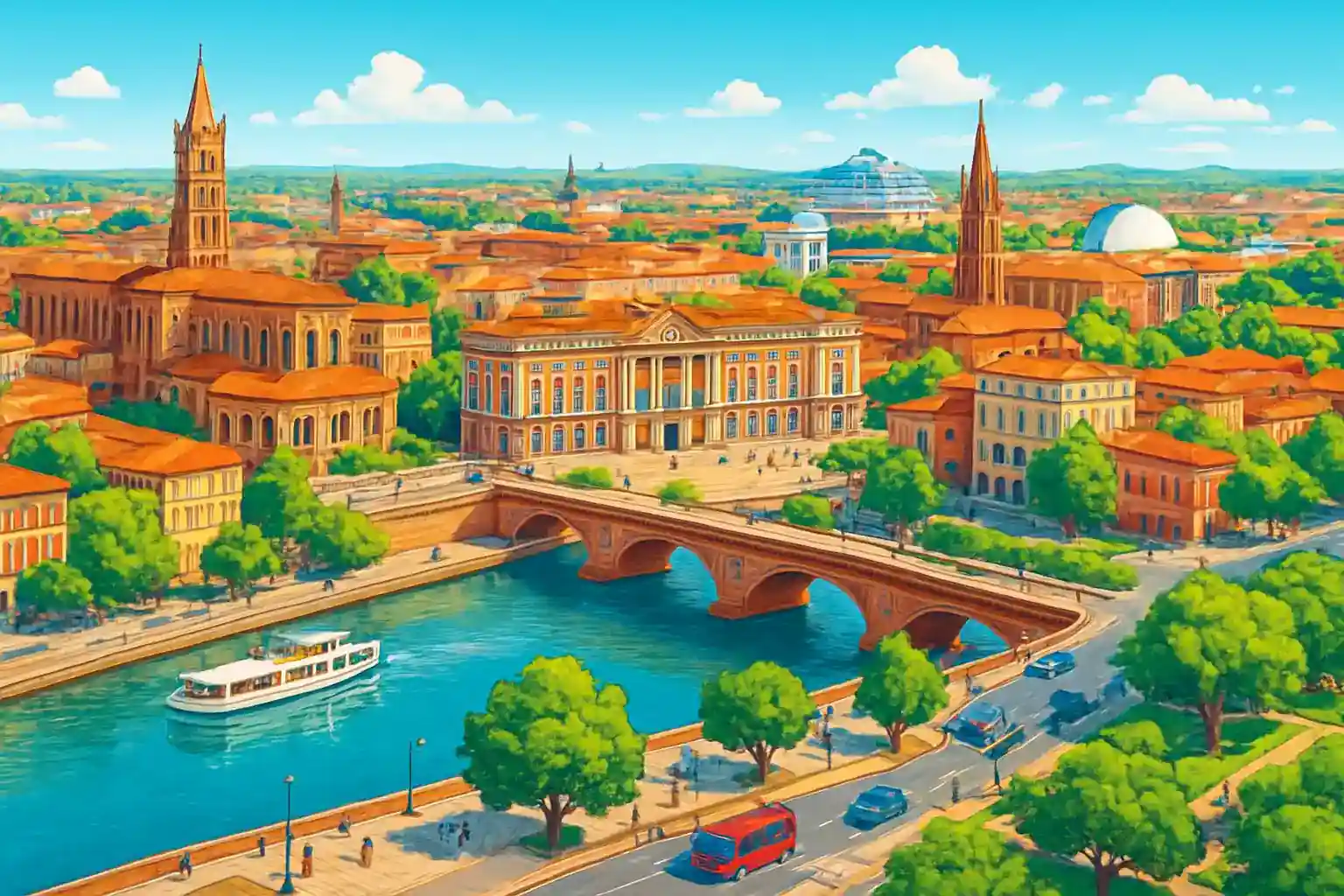 Från Matabiau är det 2 km till Toulouse centrum och 10 km till Blagnac flygplats via A621. Canal du Midi börjar sin 240 km långa sträcka mot Medelhavet alldeles nära stationen – en perfekt startpunkt för en biltur längs kanalen. Jämför de 12 uthyrarna noggrant – priserna varierar kraftigt, särskilt under sommaren.
