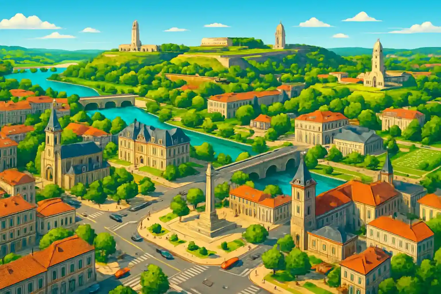 Verdun i Meuse är en stad med djup historisk betydelse från första världskriget, belägen 75 km väster om Metz. Med en uthyrare i centrum kan du utforska slagfälten, minnesmärkena och Meuse-dalen i eget tempo. Verdun omges av historiska slagfältsplatser: Fort Douaumont ligger 8 km nordost om centrum och Ossuary de Douaumont 9 km bort.