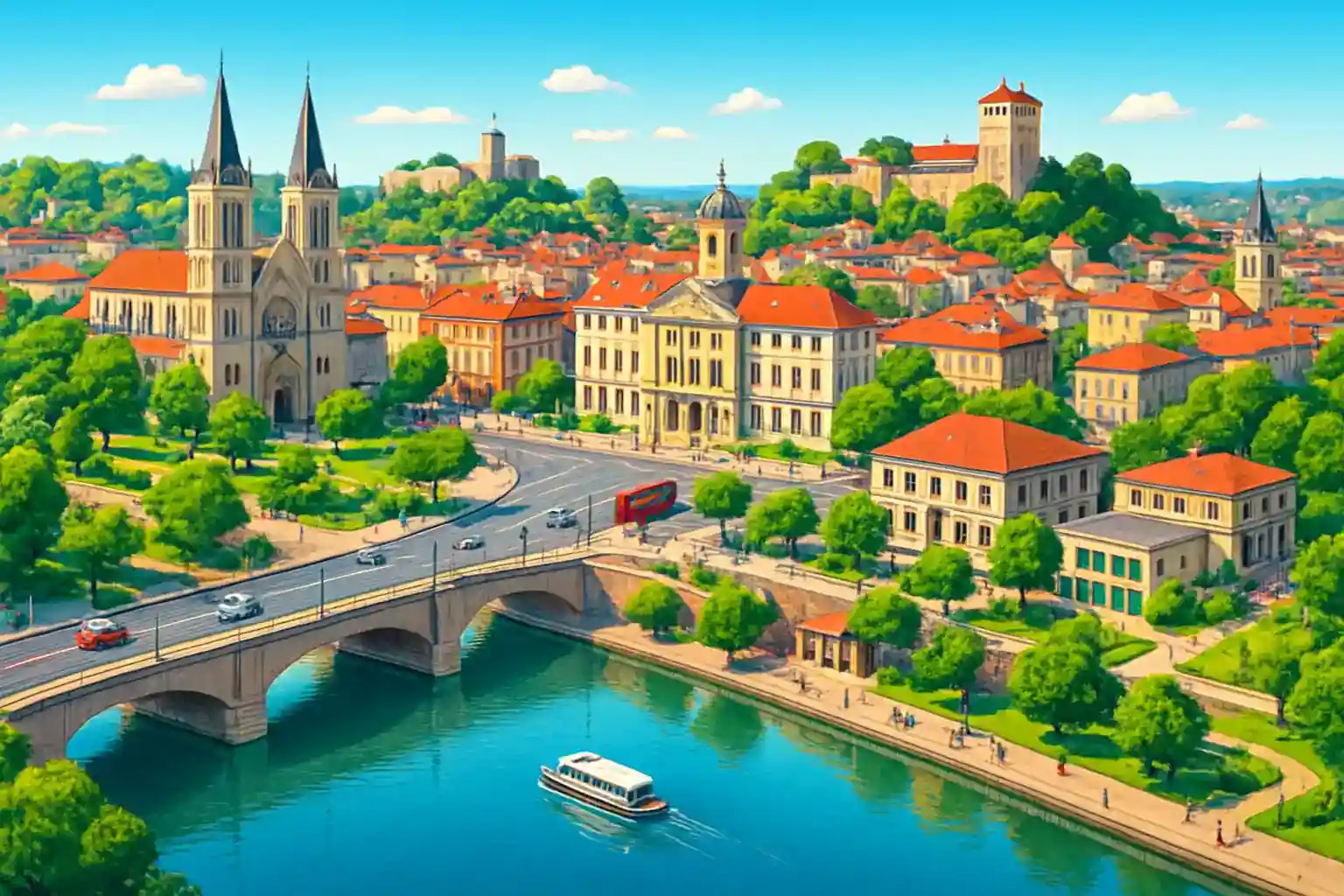 Undvik A6 under rusningstid och välj istället D306 längs Saône för en mer pittoresk körning mot Lyon. Parkering i centrum kan vara begränsad – välj en uthyrare nära järnvägsstationen för smidig upphämtning. Hur långt är det till Lyon från Villefranche-sur-Saône?