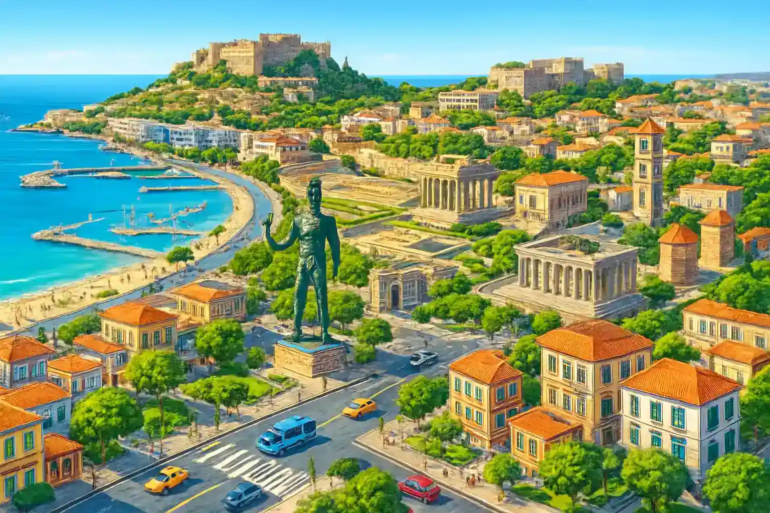Undvik att hyra bil under Ixias starka vindperioder om du är ovan vid sidvind – det kan påverka körningen. Kör till Rhodos gamla stad på kvällen när trafiken är lugnare och parkering lättare att hitta. Planera ett besök till den medeltida riddarborgsstaden i Rhodos stad, bara 10 minuters körning bort.
