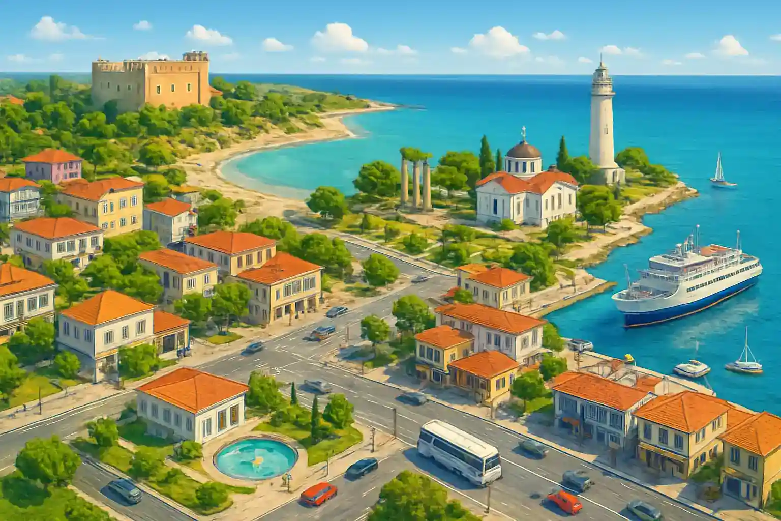 Det är ca 55 km och tar ungefär 50 minuter med bil via E55 och sedan inåt landet. Finns det parkeringsmöjligheter vid hotellet för hyrbilen? Grecotel Loutra Kyllinis har parkeringsplats för gäster, inklusive hyrbilsförare.