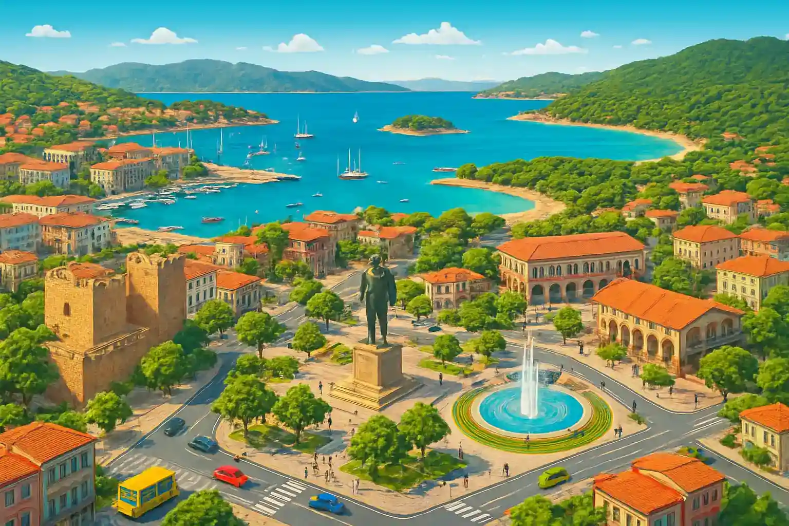 Undvik att köra längs kustvägarna i rusningstid under juli–augusti. Tanka i Marmaras – bensinstationer är glesa längs Sithonias sydkust. Finns det parkeringsmöjligheter i Marmaras centrum?