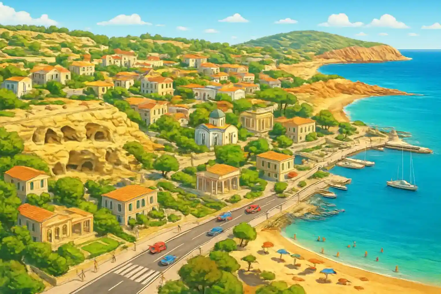 Vägen söderut mot Lendas (ca 40 km) är smal men bjuder på fantastiska vyer. Boka hotelleverans kvällen före för smidig start. Hur fungerar leverans till hotell i Matala?