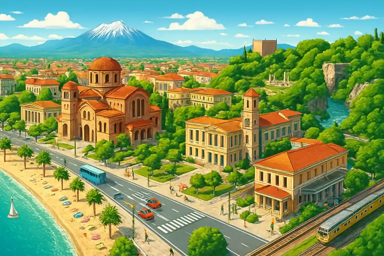 Boka hyrbilen i förväg – utbudet på just denna plats är begränsat till en uthyrare. Kör längs E75 söderut mot Larissa för att uppleva det gröna inlandet av Thessalien. Undvik att parkera längs strandpromenaden i Leptokaria under högsäsong – parkeringsplatser vid hotellet är bekvämare.