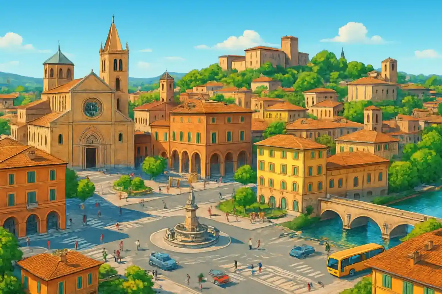 Fabriano i Marche-regionen är känt som papperstillverkningens vagga och erbjuder enkel tillgång till Appenninskogen och medeltida stadskärnor. Med 5 uthyrare i centrum hittar du bil för att utforska omgivningarna på egna villkor. Ancona ligger cirka 75 km österut (ca 1 timme), medan Perugia nås på ungefär 80 km söderut.