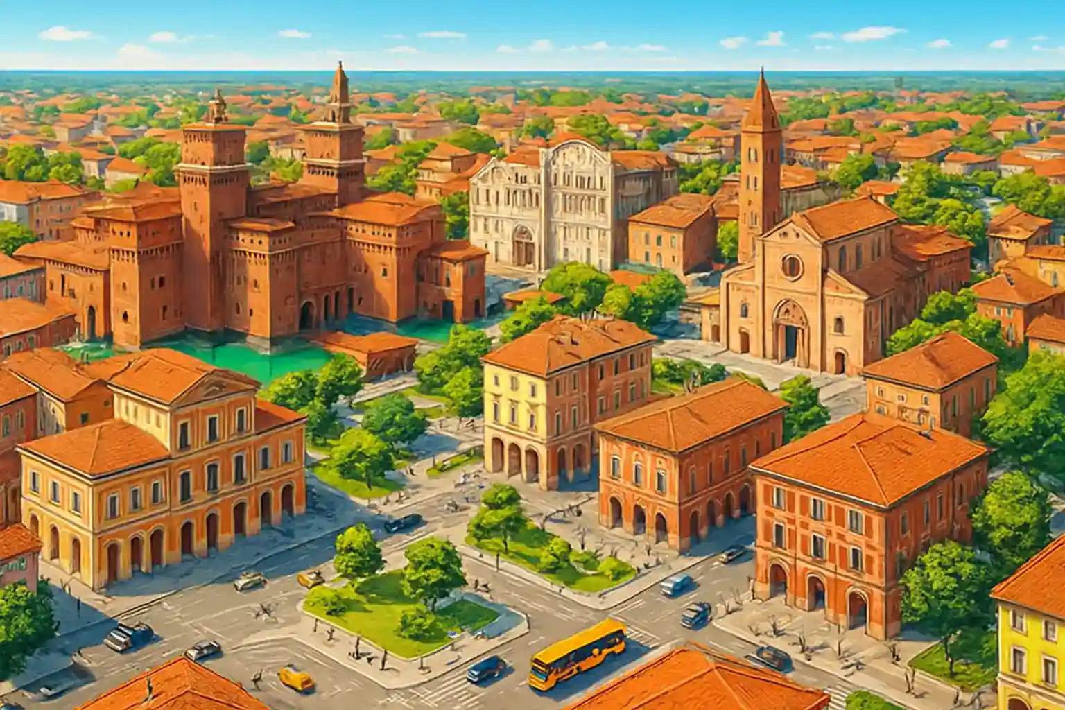 Ferraras centrum är relativt bilfritt och präglas av breda renässansgator som Via delle Volte och det imposanta Palazzo dei Diamanti. Po-deltaets naturreservat, ett av Europas viktigaste fågelskådarområden, börjar bara 30 km öster om staden. Hyr en liten stadsbil – Ferraras gator är smala och parkeringsplatserna begränsade nära centrum.