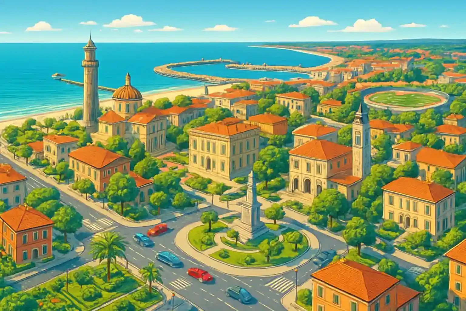 Giulianovas gamla stad på kullen är värd ett besök – parkera nere vid hamnen och gå upp. Hur lång tid tar det att köra från Giulianova till Pescara flygplats? Ungefär 30 km och 25–35 minuter via A14 söderut.