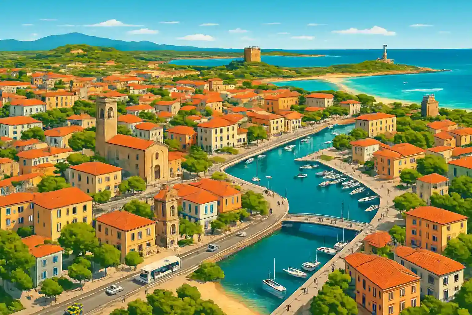 Capo Comino ligger 8 km söderut och Berchida 15 km – båda med vackert turkost vatten och fin sand. Kan jag hyra bil i La Caletta och lämna den i Olbia? Det beror på uthyrarens policy – kontakta den lokala uthyraren i förväg då envägsuthyrning kan medföra extra avgift.