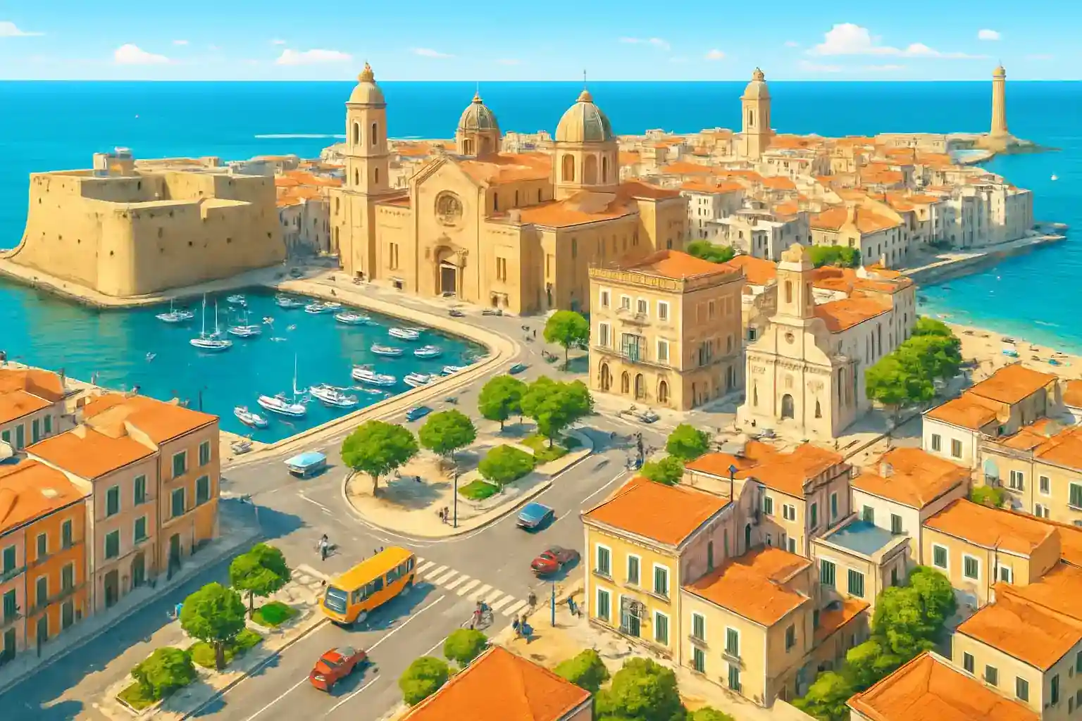 Monopoli är en av Apuliens vackraste kuststäder med en medeltida gammal stad, en livlig hamn och kristallklart Adriatikvatten – och med 3 uthyrare i centrum har du bra valmöjligheter. Staden ligger ca 45 km söder om Bari längs SS16. Med hyrbil kan du enkelt kombinera strandliv med utflykter till Trulli-landet och Ostuni.