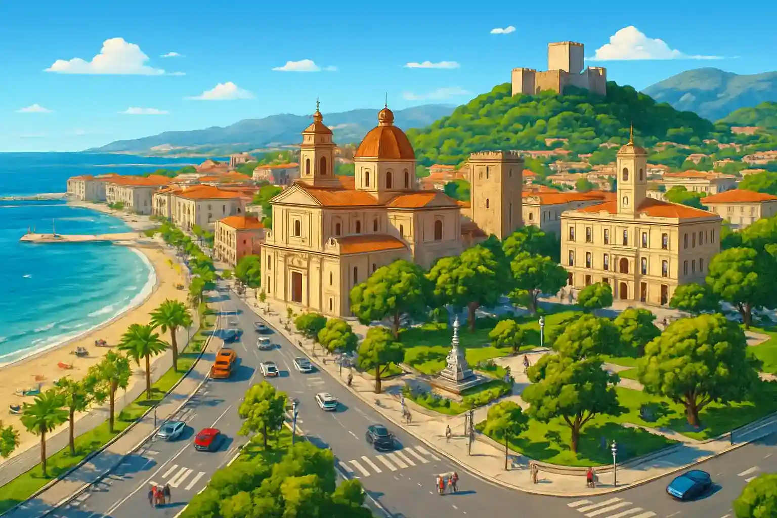 Siderno är en kuststad i Kalabrien längs Joniska havet, känd för sina långa sandstränder och livliga centrum. Med hyrbil från Siderno centrum når du enkelt grannstaden Locri på bara 10 minuter (8 km) och den antika arkeologiska platsen Locri Epizefiri. Reggio di Calabria ligger cirka 90 km söderut, ungefär en timmes körning längs SS106.