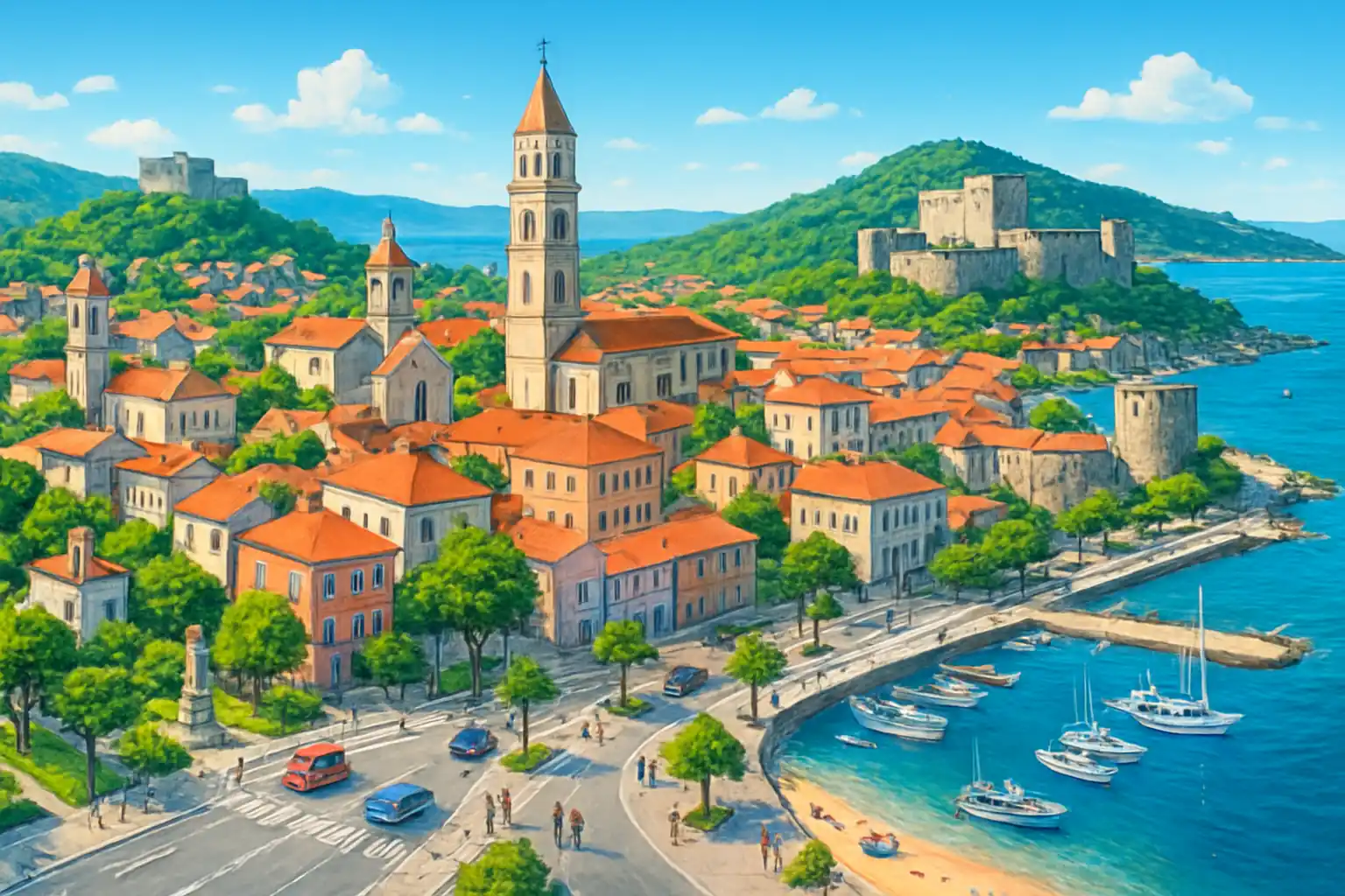 Hyr bil i Novi Vinodolski och utforska den kvarvarens kuststad på Kvarnerrivieran med 1 uthyrare i centrum. Staden är känd för Vinodollagen från 1288 – ett av Europas äldsta lagdokument – och sitt vackra läge med utsikt mot Kvarnerbuktens öar. Rijeka ligger ca 35 km norrut (ca 30 min) och Crikvenica ca 10 km norrut (ca 12 min).