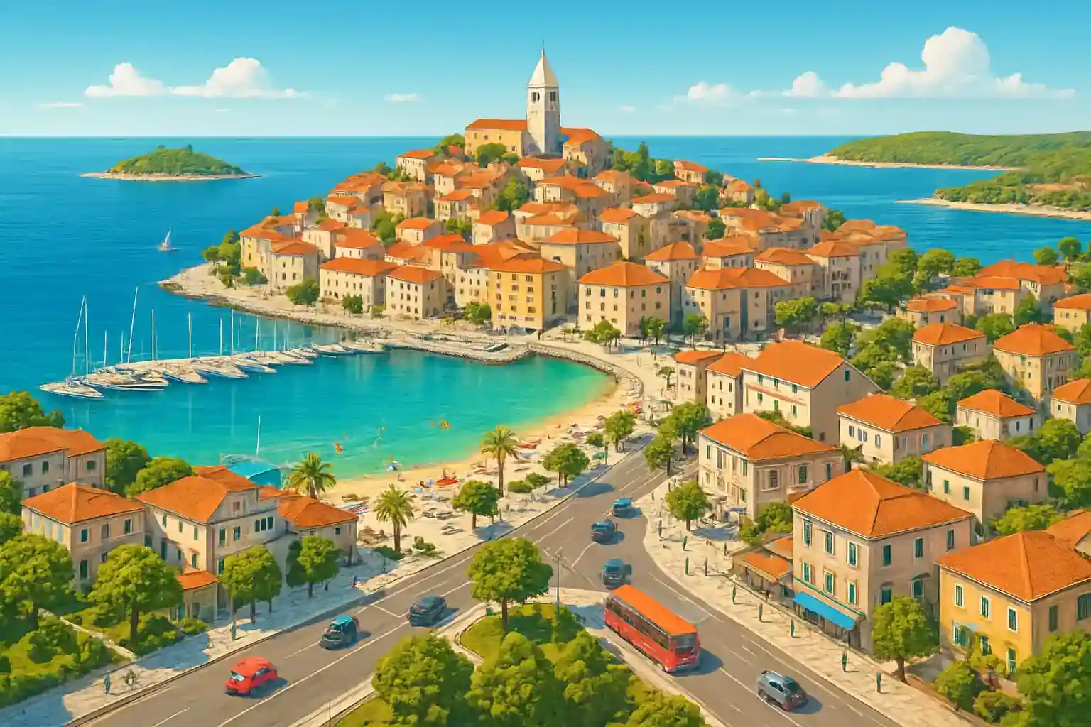 Primošten är en charmig halvöstad längs Dalmatiens kust, belägen ca 30 km norr om Šibenik och 50 km söder om Split. Med 1 uthyrare i centrum finns möjlighet att hyra bil direkt i byn för att utforska regionen. Området är känt för sina vingårdar och kristallklara vikar.