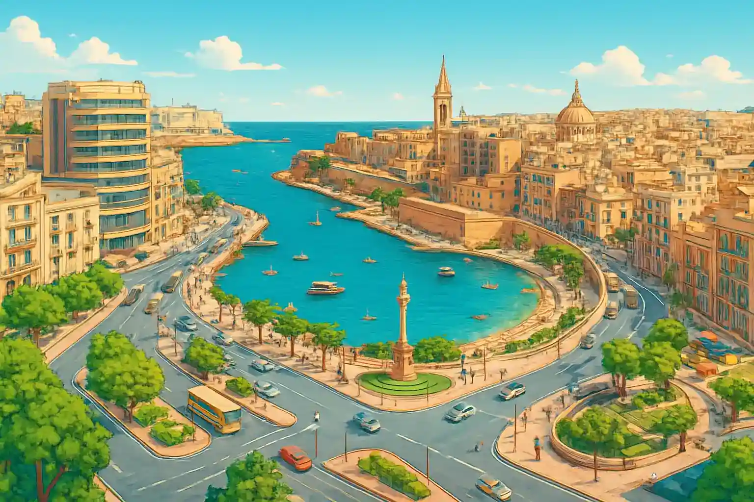 Ta färjan från Sliema Ferries till Valletta (5 min, 1,50 euro) istället för att köra dit. Planera utflykter till Mdina (12 km, 20 min) på morgonen innan dagsbussarna anländer. Är det svårt att hitta parkering i Sliema med hyrbil?