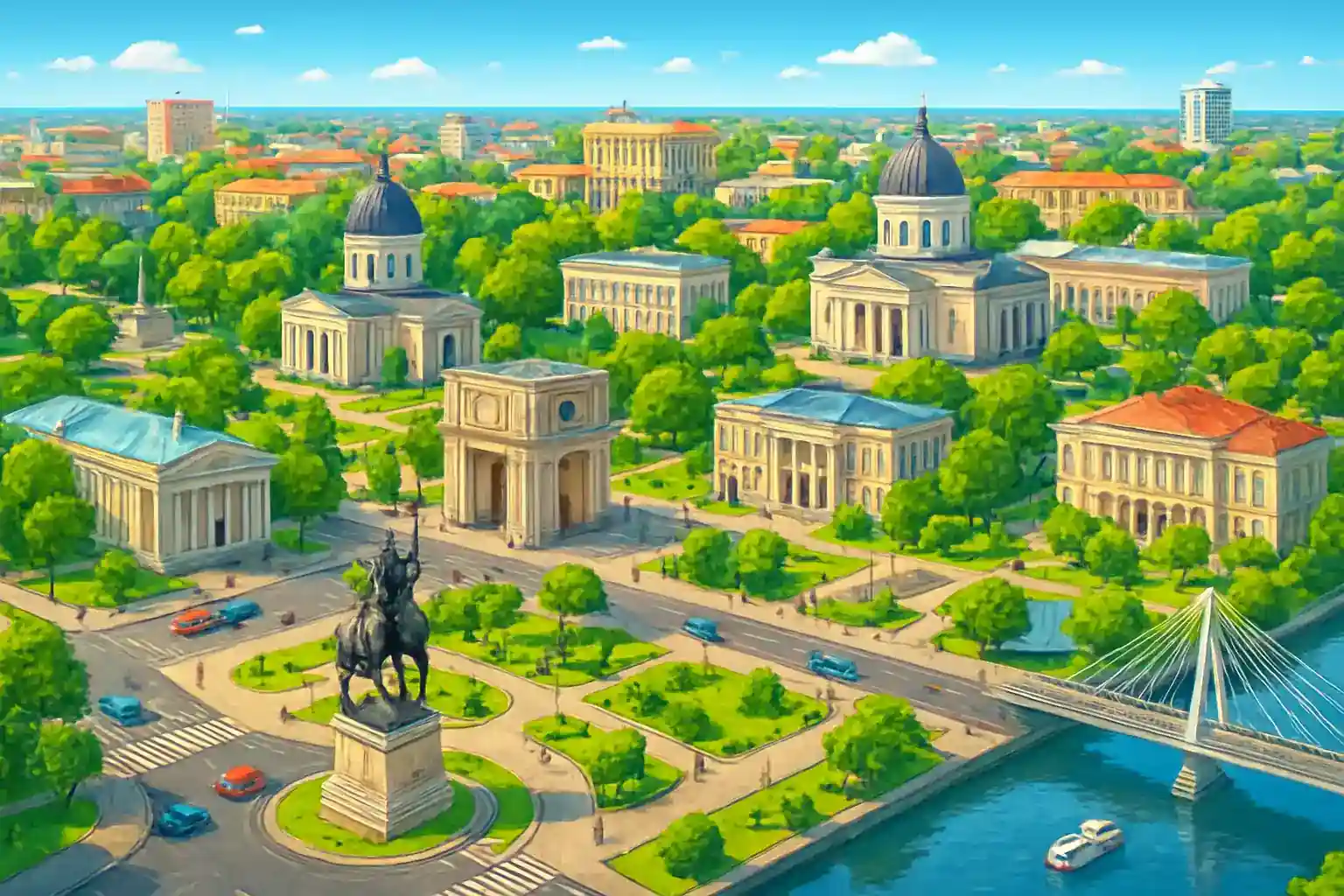 Marriott Chisinau är beläget i det moderna affärskvarteret nära parlamentsbyggnaden och nationalparken. Omgivningen präglas av ambassader, ministerier och välskötta boulevarder. Parcul Catedralei är en kort promenad bort och Chisinaus bästa restauranger finns inom 500 meter.