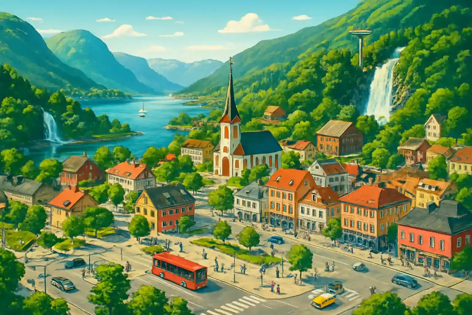 Hardangerfjorden nås på ca 50 km söderut, och Sognefjorden ligger ca 80 km norrut. Kör Stalheimskleiva tidigt på morgonen för att undvika turistbussar – vägen är smal och enriktad under högsäsong. Voss er känt för fallskärmshoppning, rafting och kajakpaddling – hyrbilar gör det enkelt att ta sig till alla aktivitetsplatser.