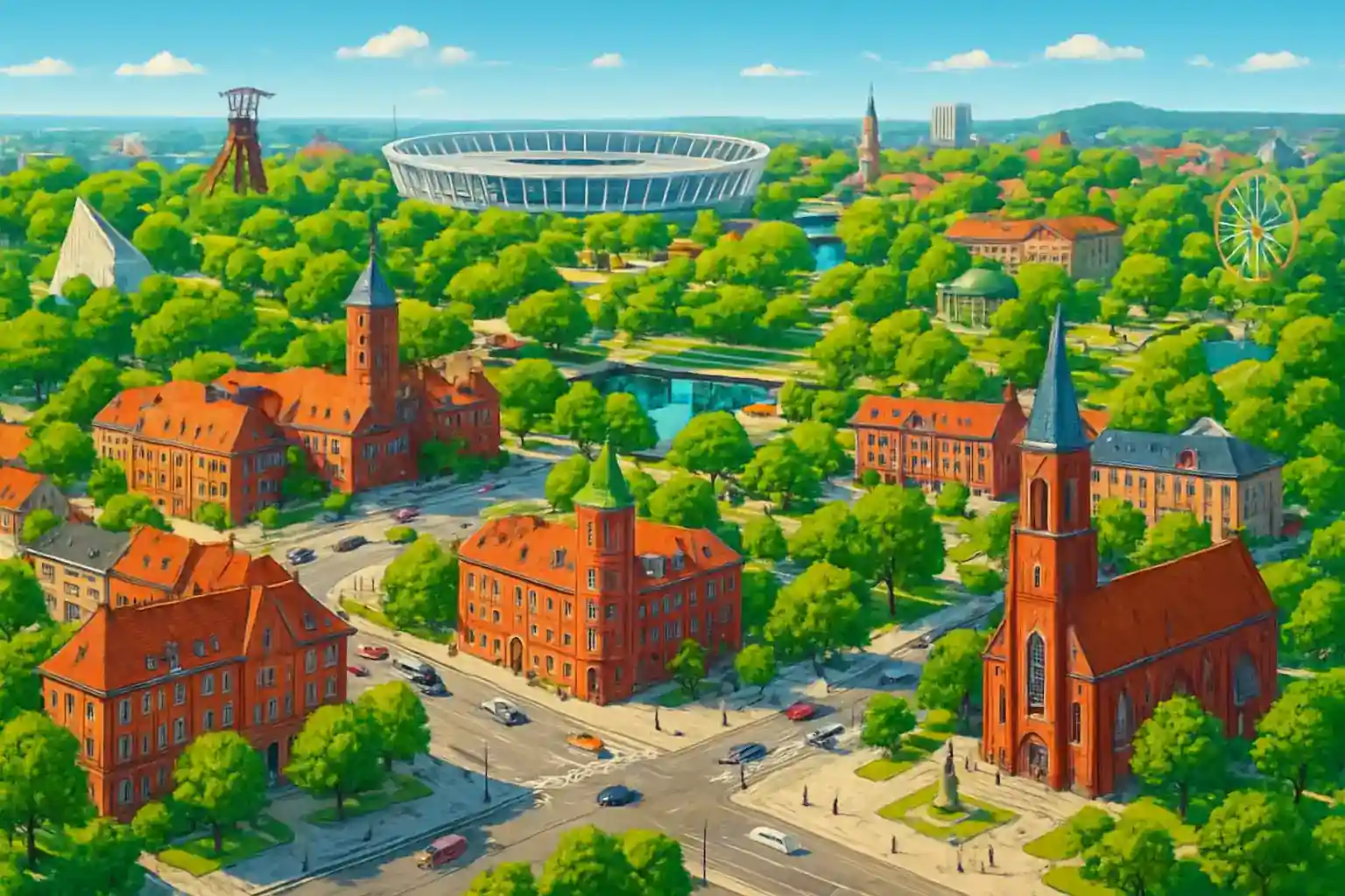 Chorzów är tätt trafikerat under rusningstid; planera upphämtningen utanför 07–09 och 15–17. Schlesiska parken är ett perfekt första stopp – parkera gratis och promenera i den vackra naturen. Använd hyrbilen för att utforska Schlesiens industriarv, bland annat Guido-gruvan i Zabrze, bara 10 km västerut.