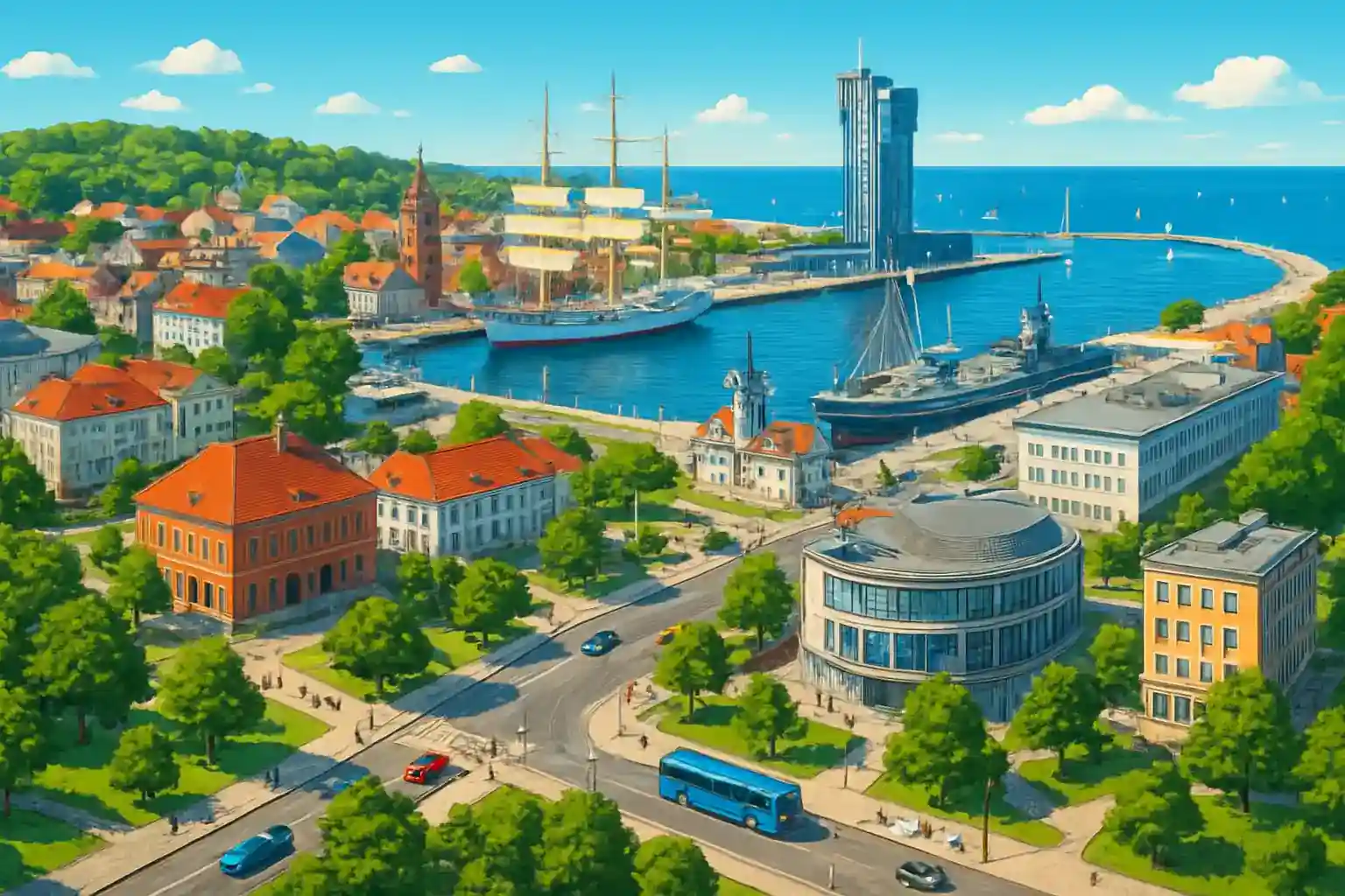 Kör norrut mot Gdynia Redłowo för vacker utsikt över Östersjön utan turistträngseln. Boka bil i förväg under juli-augusti då Gdynia Sailing Days lockar tusentals besökare. Hur långt är det från Gdynia centrum till Sopot?