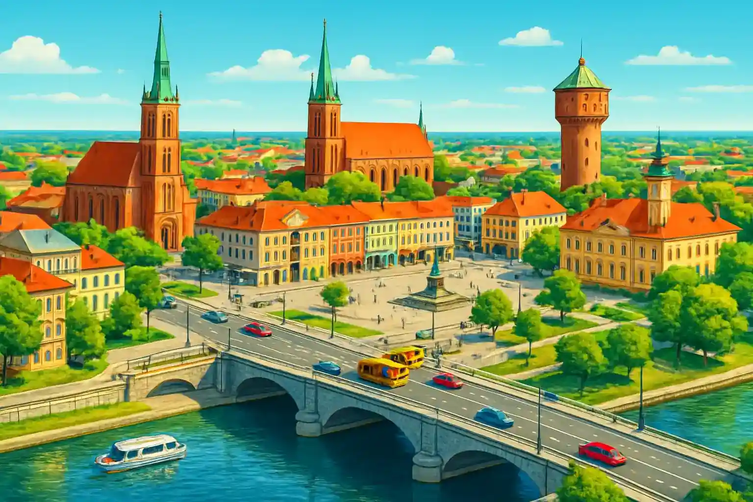 Hyr bil i Konin Ślesińska och utforska Wielkopolska-regionens sjölandskap och historiska platser. Konin är en industristad i centrala Polen med närheten till Gopło-sjön och de medeltida piasistkyrkorna i Kruschwica, bara 25 km norrut. Med en hyrbil är hela Storpolens kulturarv lättillgängligt.