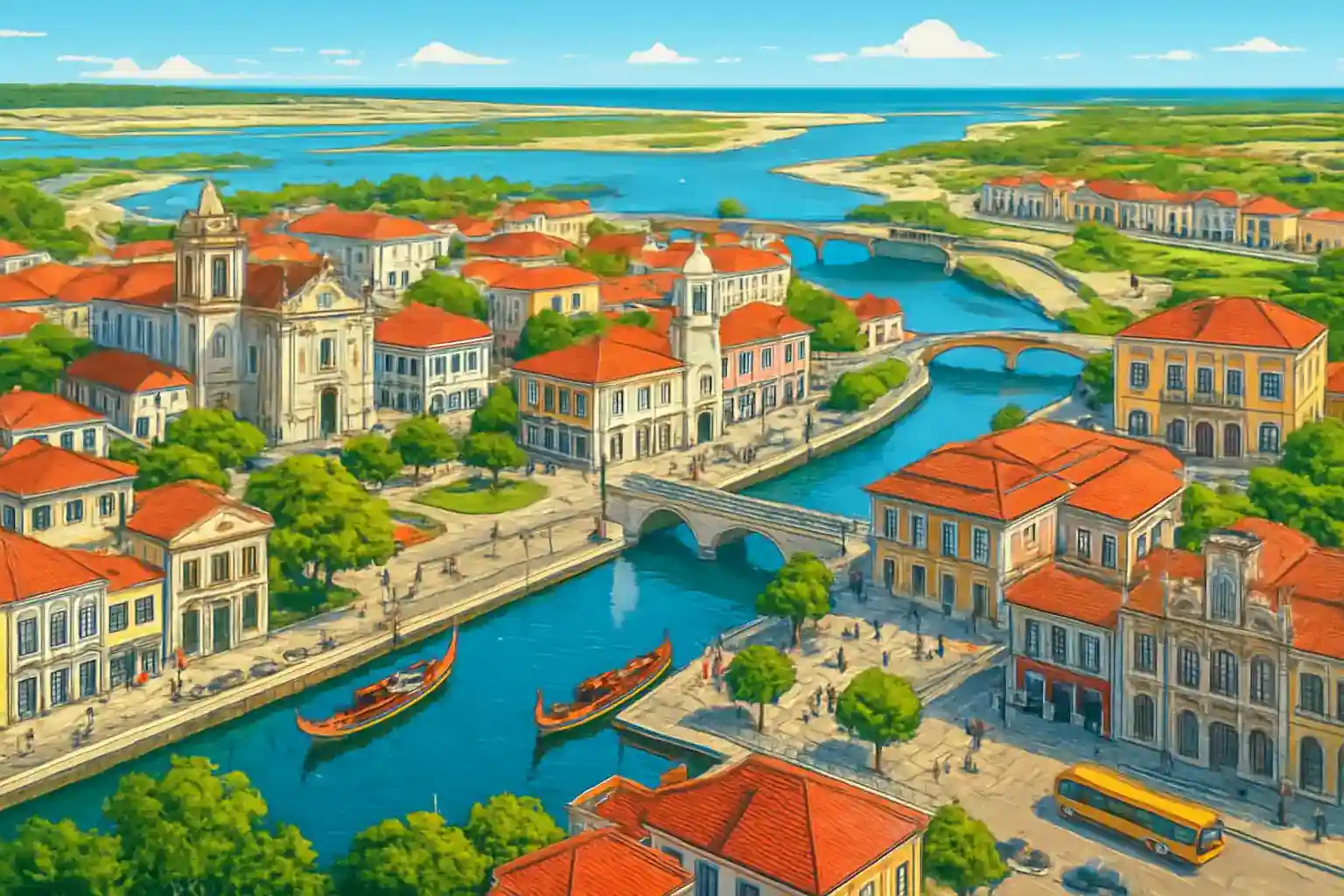 Aveiro kallas ofta 'Portugals Venedig' tack vare sina kanaler och traditionella moliceiro-båtar, och ligger strategiskt vid Atlantkusten, ca 75 km söder om Porto. Med hela 13 uthyrare i centrum erbjuder Aveiro ett av landets bästa utbud av hyrbil, med konkurrenskraftiga priser och bred tillgänglighet. Staden är en utmärkt startpunkt för att utforska Costa Nova, Ria de Aveiro och det omgivande Bairrada-vinområdet.