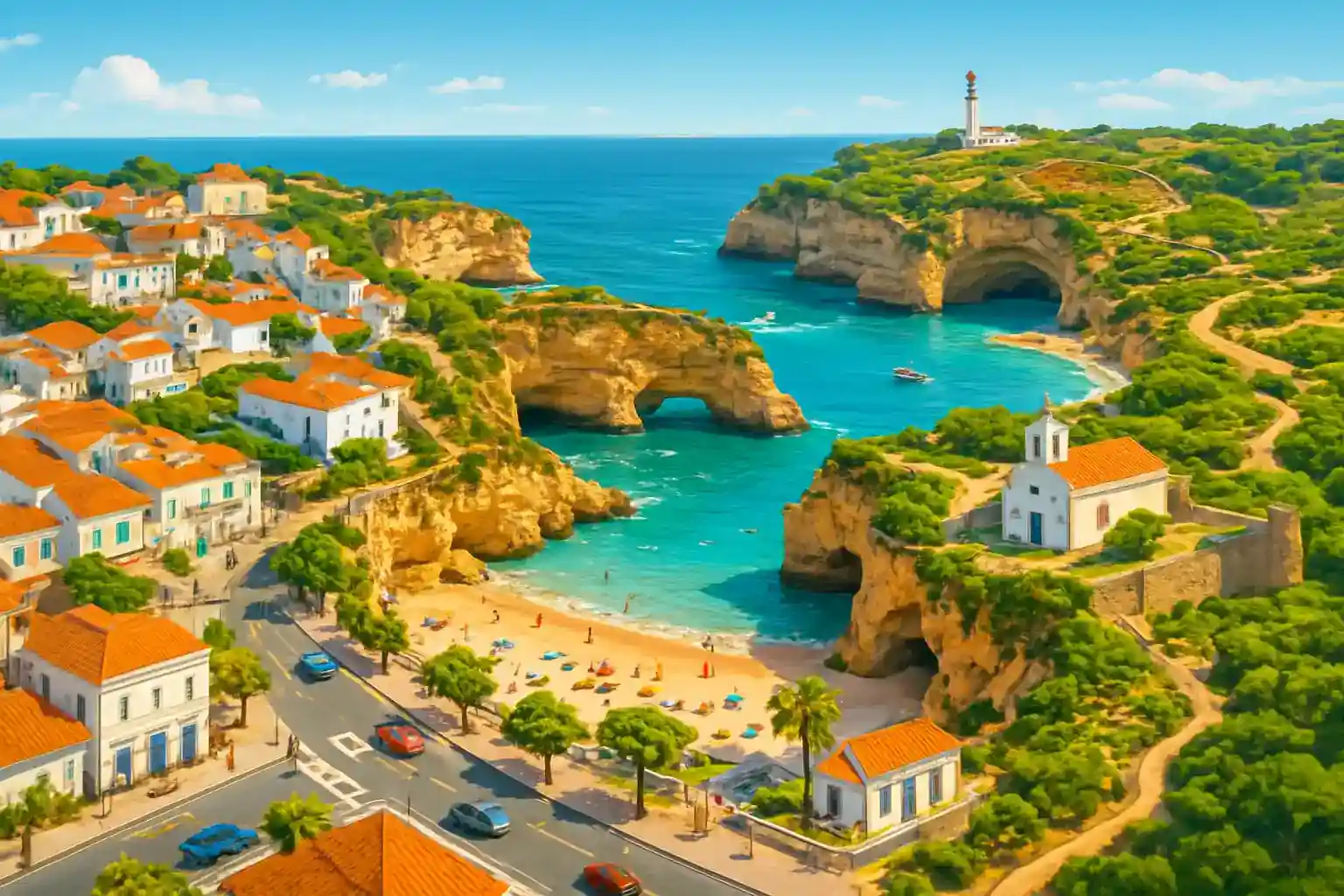 Carvoeiro Benagil är startpunkten för en av Algarvekustens mest ikoniska upplevelser – grottan Benagil, som ligger bara 2 km öster om Carvoeiro by. Med en uthyrare i området kan du enkelt ta dig längs klippkusten och utforska stränder som Praia de Benagil och Praia de Albandeira. Bil är det smidigaste sättet att nå de mer avskilda vikarna längs denna kust.