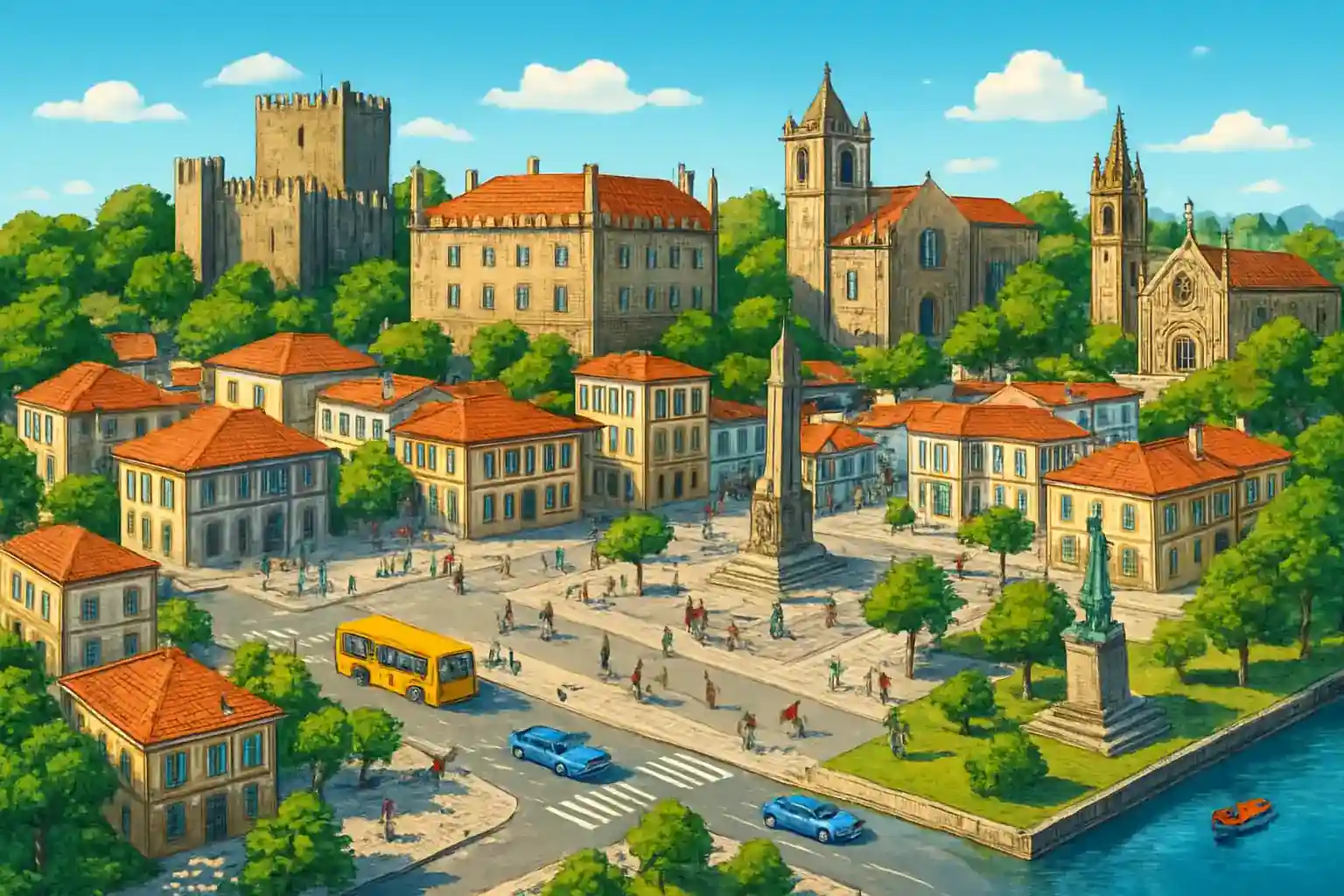 Staden är livlig med universitetskultur och lokala marknader i Largo do Toural. Parkera i det underjordiska garaget vid Alameda Dr. Alfredo Pimenta för enkel tillgång till gamla stan.