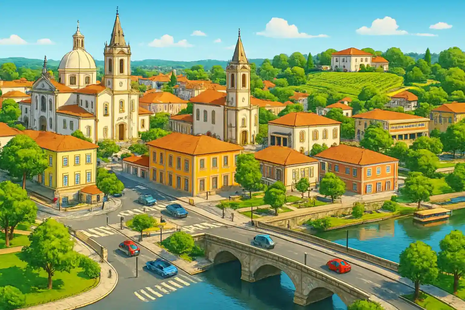 Aveiro med sina kanaler och Art Nouveau-arkitektur nås på 20 km norrut via N1, ca 25 minuters körning. Boka en vinprovning på Caves Aliança, bara 2 km från centrum, och planera körvägen i förväg så du har en utsedd förare. Kombinera besöket med en dagstur till Buçaco-skogen 15 km söderut för ett av Portugals vackraste skogslandskap.