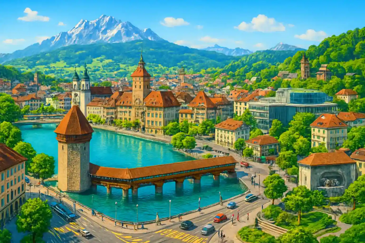 Ta hyrbilen till Rigi och kör upp till Rigi Staffel för fantastisk utsikt över fem sjöar. Utforska Zugersee-slingan längs sjöns stränder och stanna i Zug för en klassisk Kirschtorte. Besök Luzern, bara 30 km söderut, för Kapellbrücke och det historiska stadscentrumet.